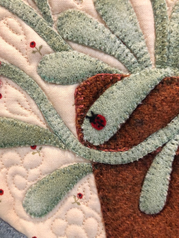 Below is one of many red LadyBugs I’ve added to the quilt.