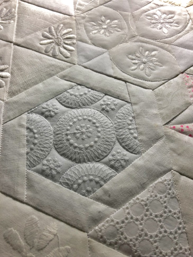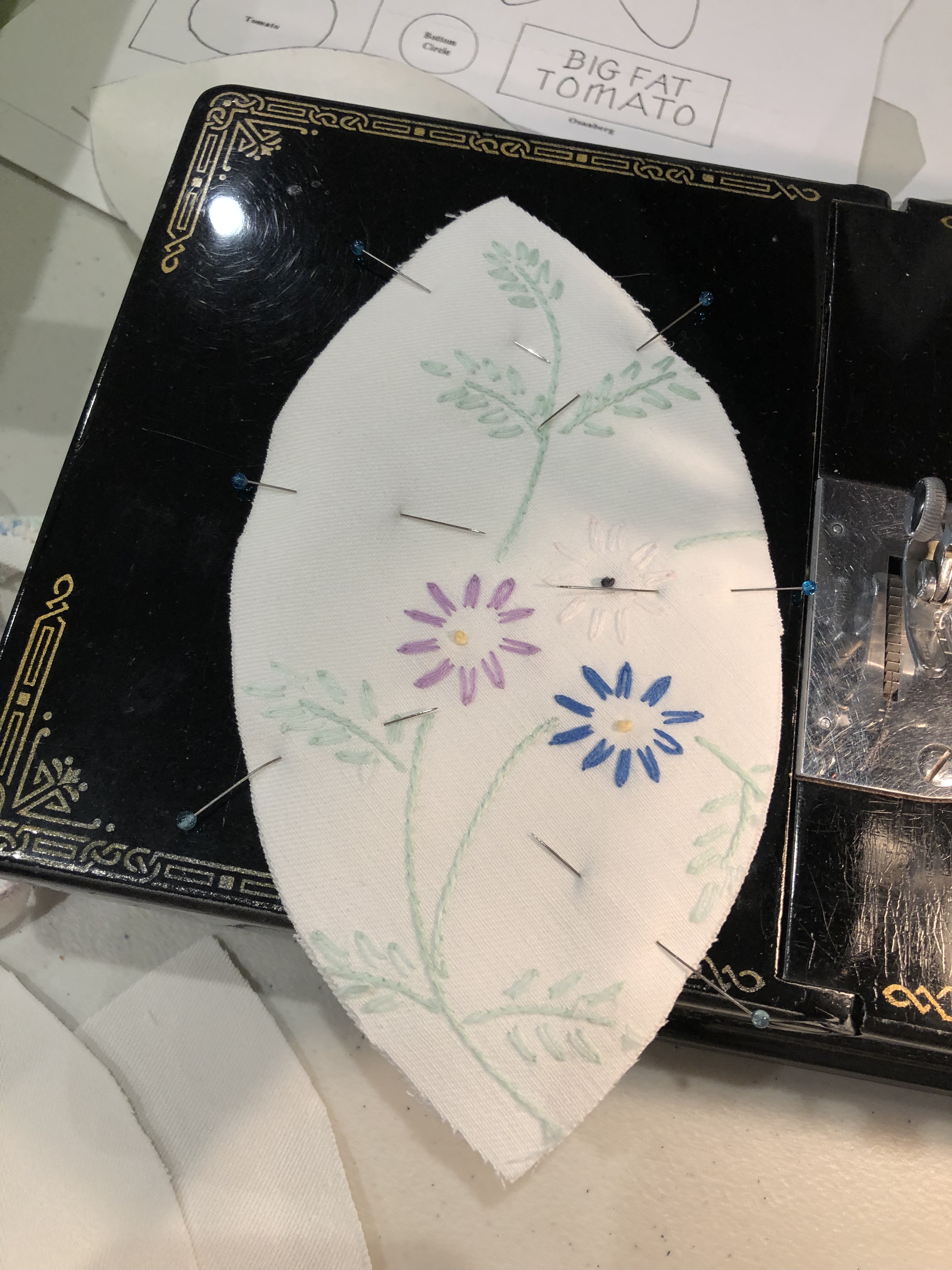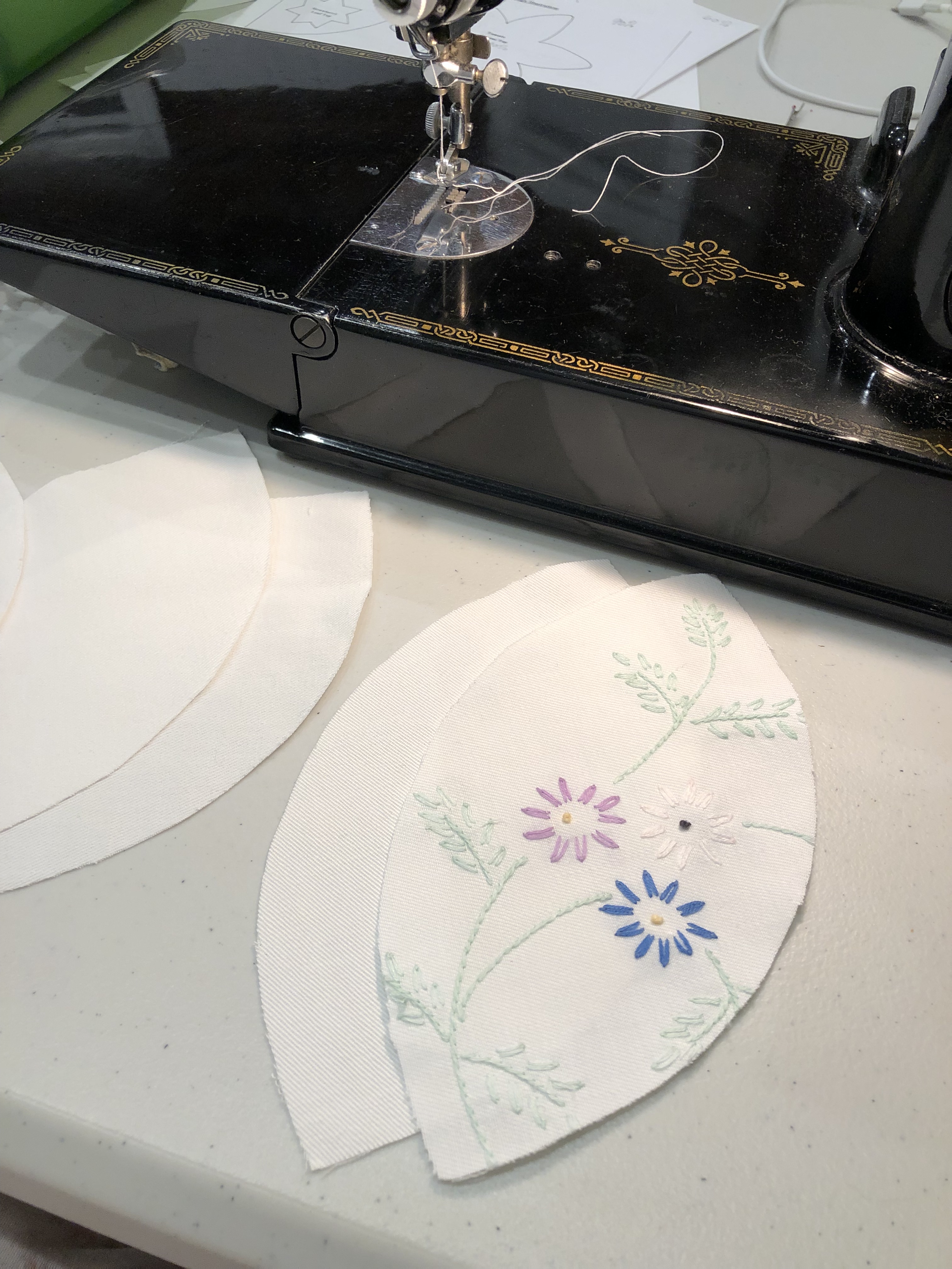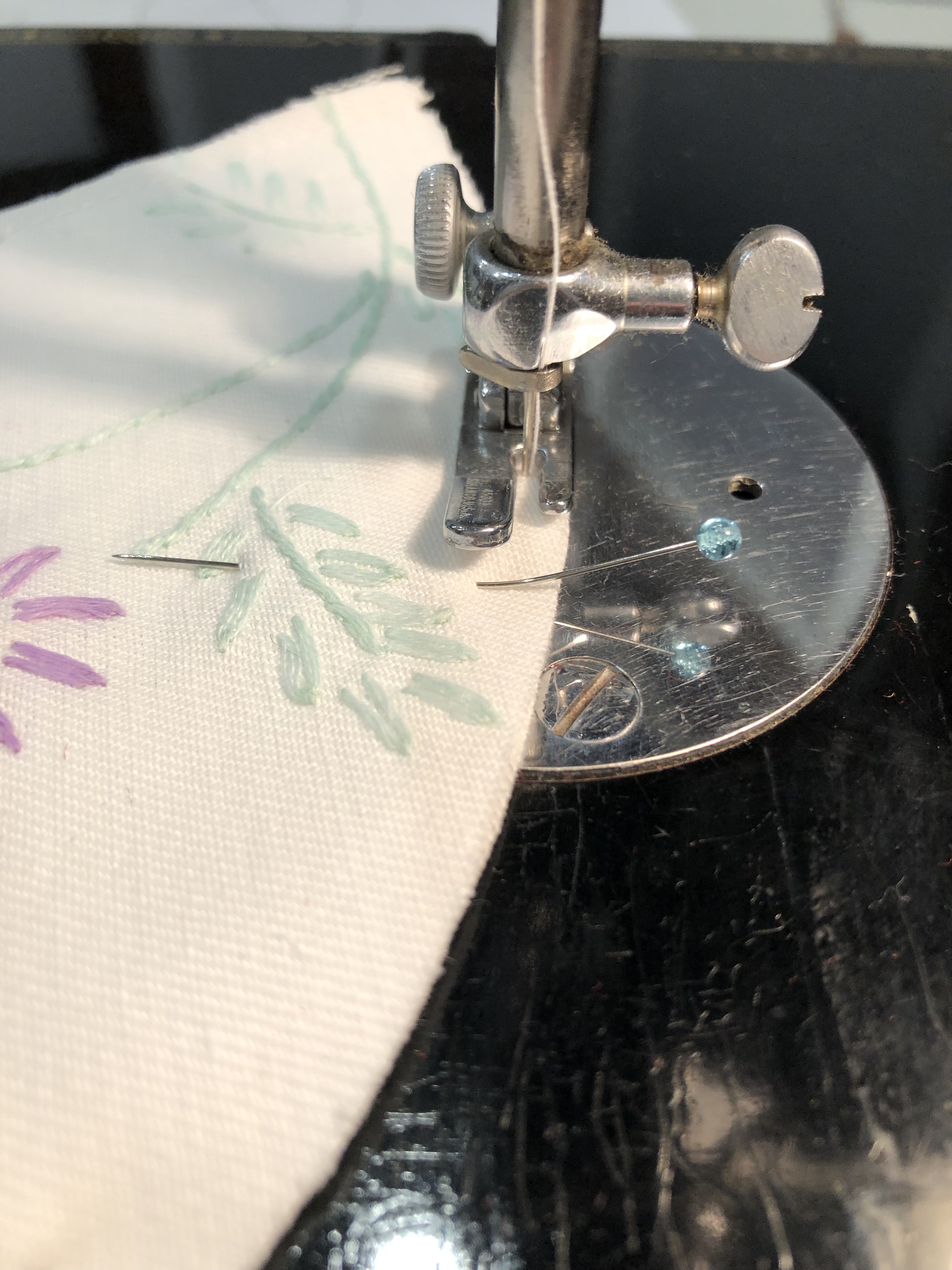 I did a running stitch on my sewing machine to hold the embroidered piece and the bleached muslin together. After stitching they become 1 unit.