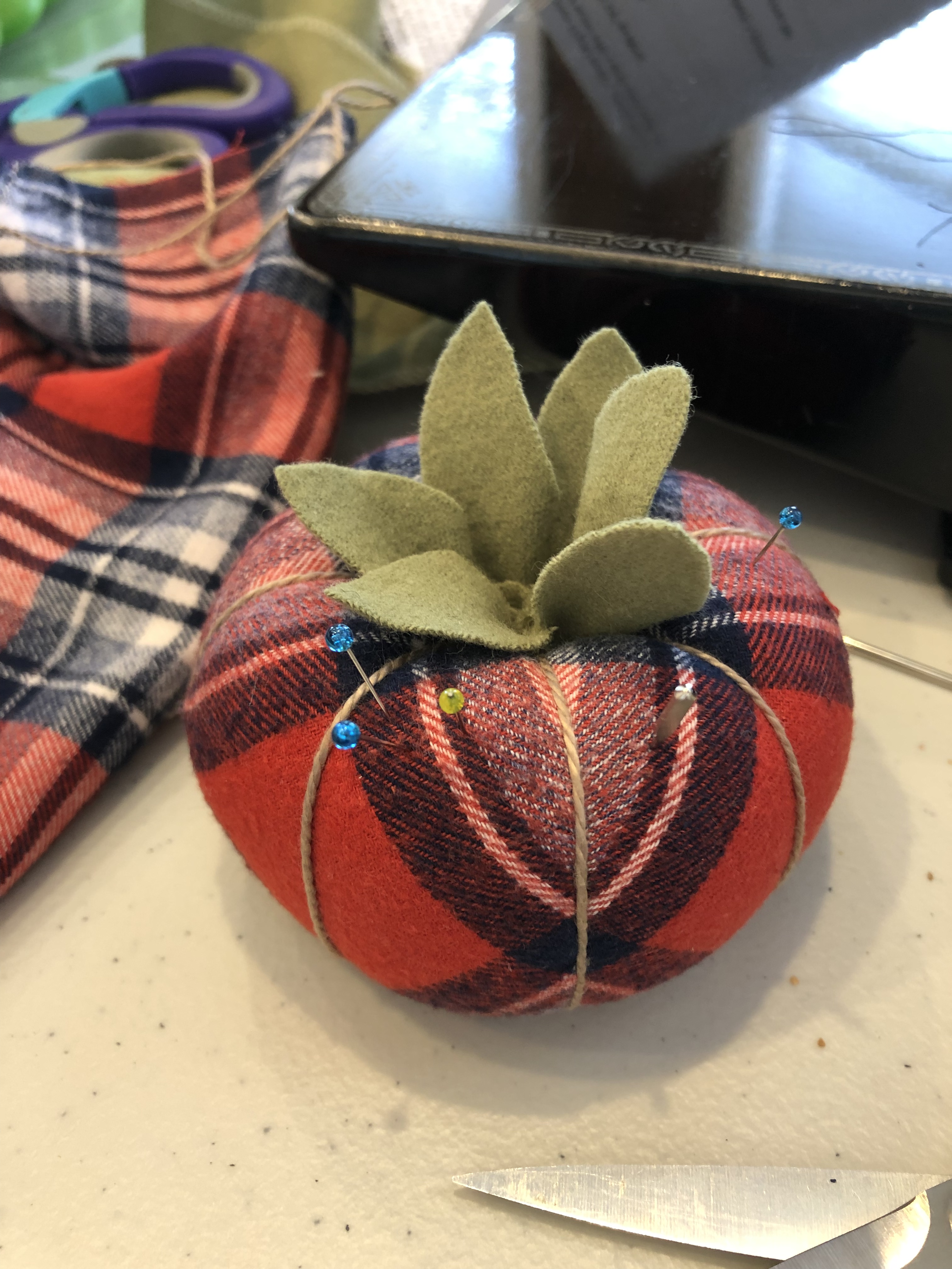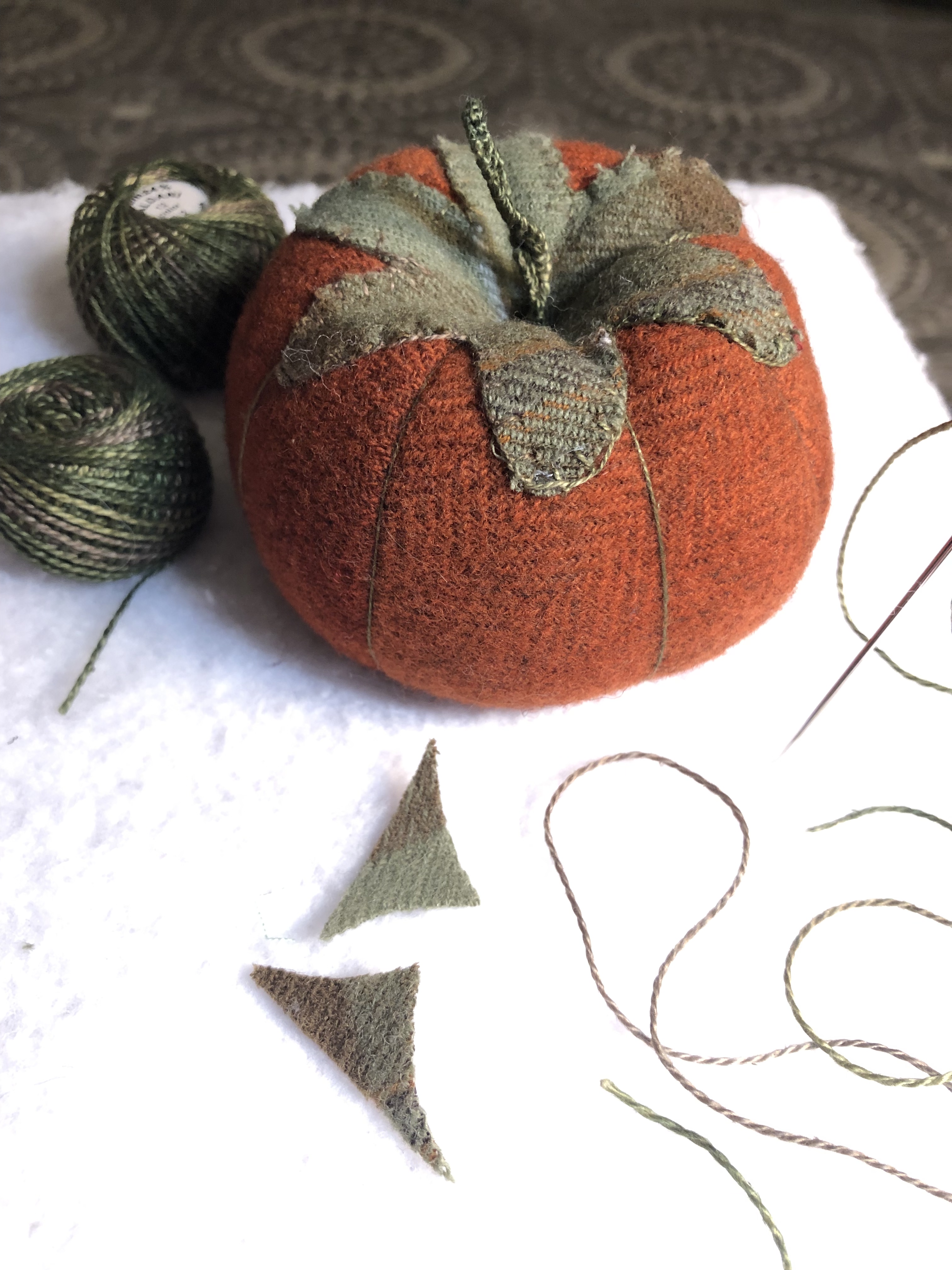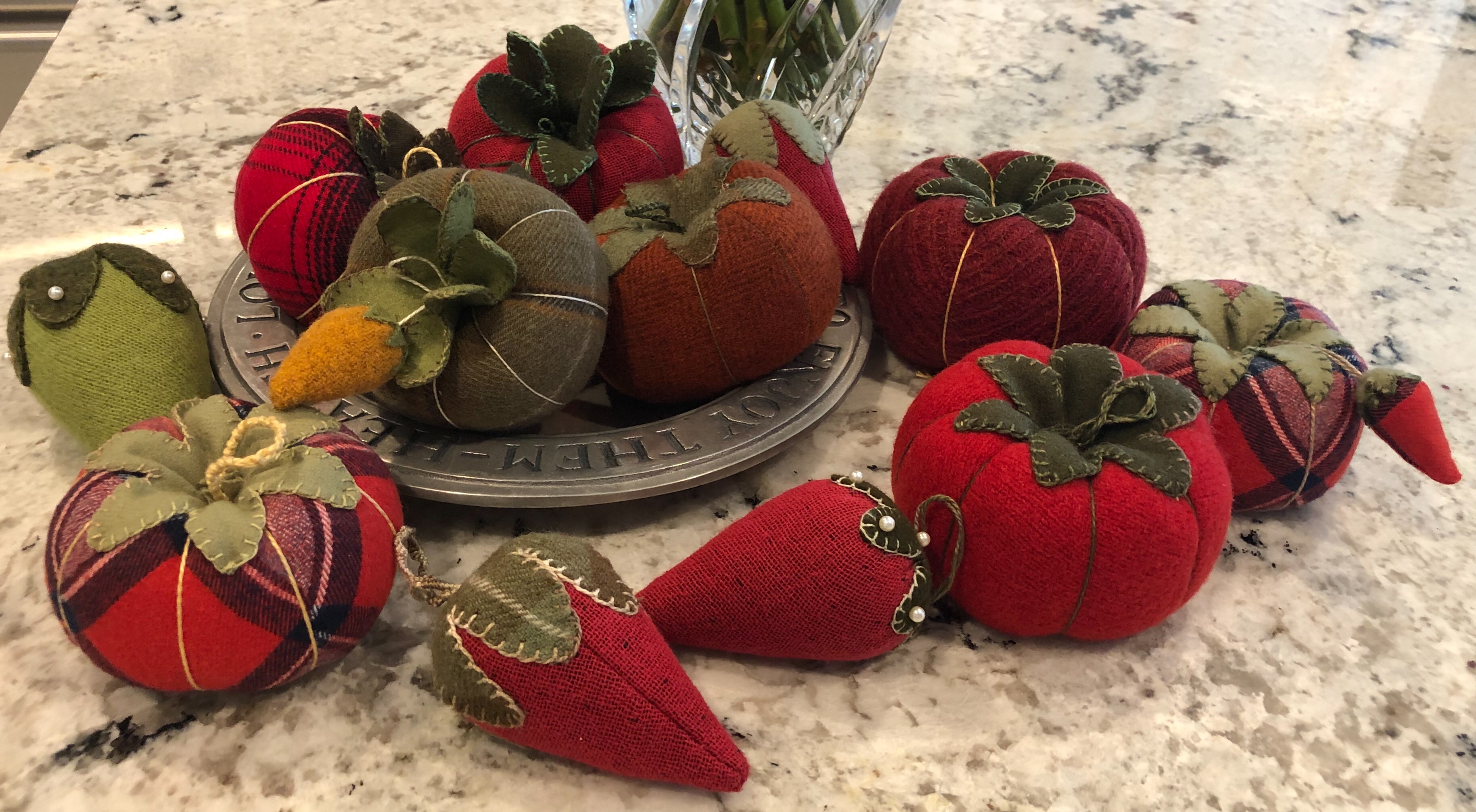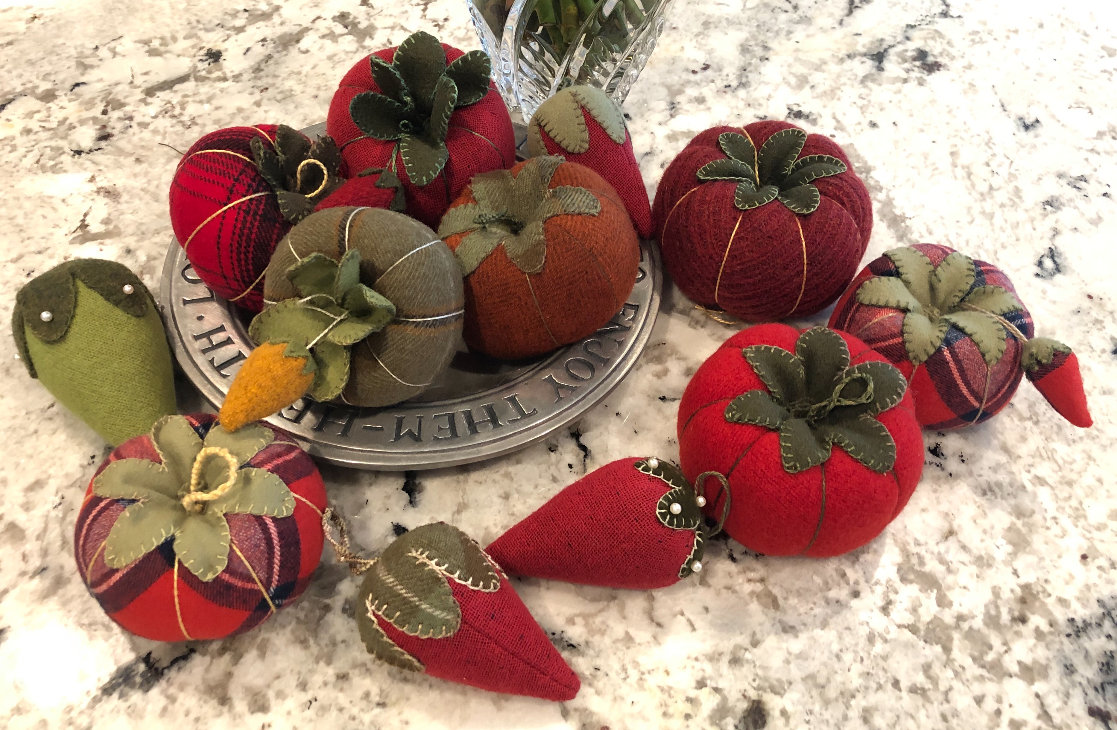 If you haven’t made one or two tomato pin cushions in your quilting life what are you waiting for? I bought this pattern from Birdbrain Designs several years ago and set about making several of their Big Fat Tomato projects. Here’s a link to their website: