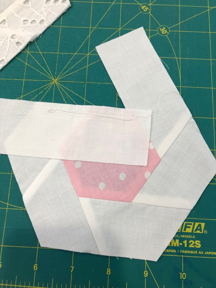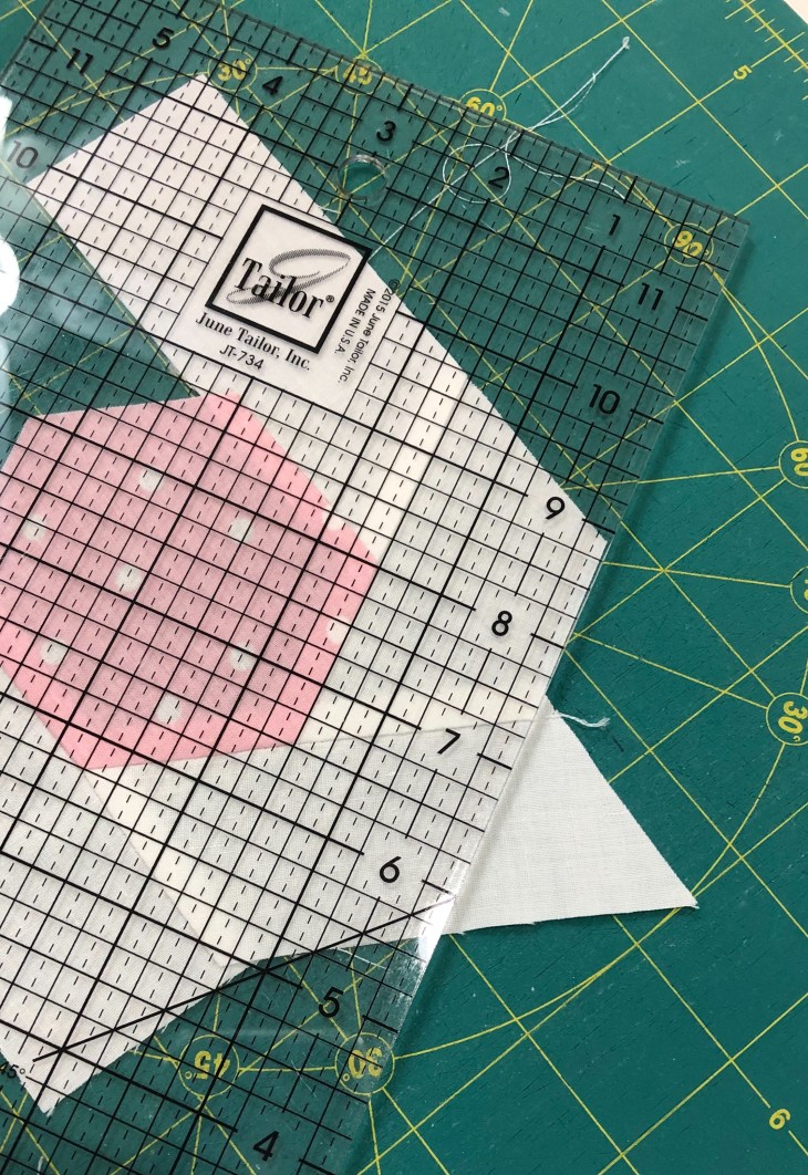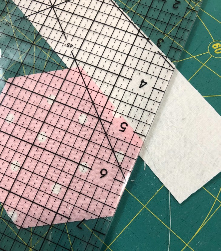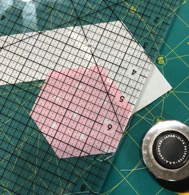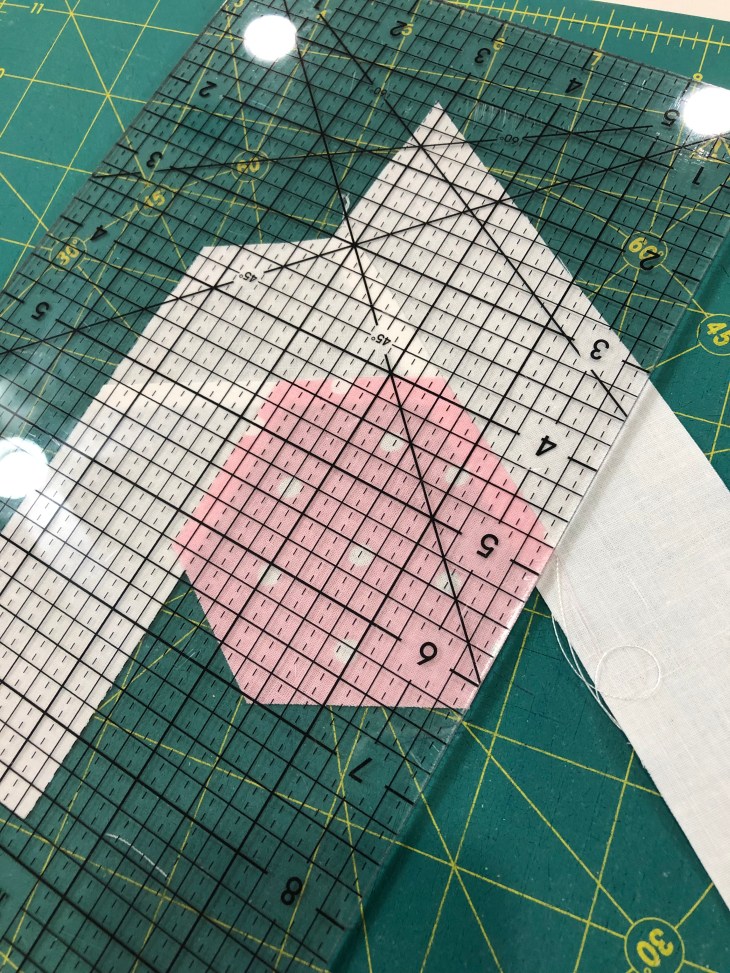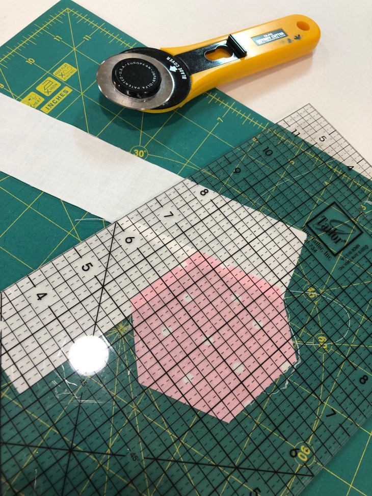 In the example below I’m cutting 3 fan shaped patterns that will make the large (think about 4 1/2″ tip to top) Strawberry pin cushion.