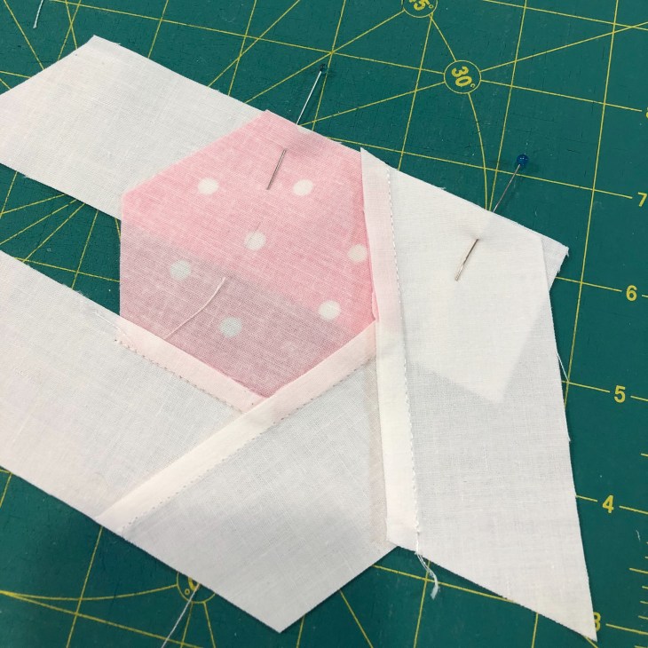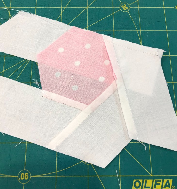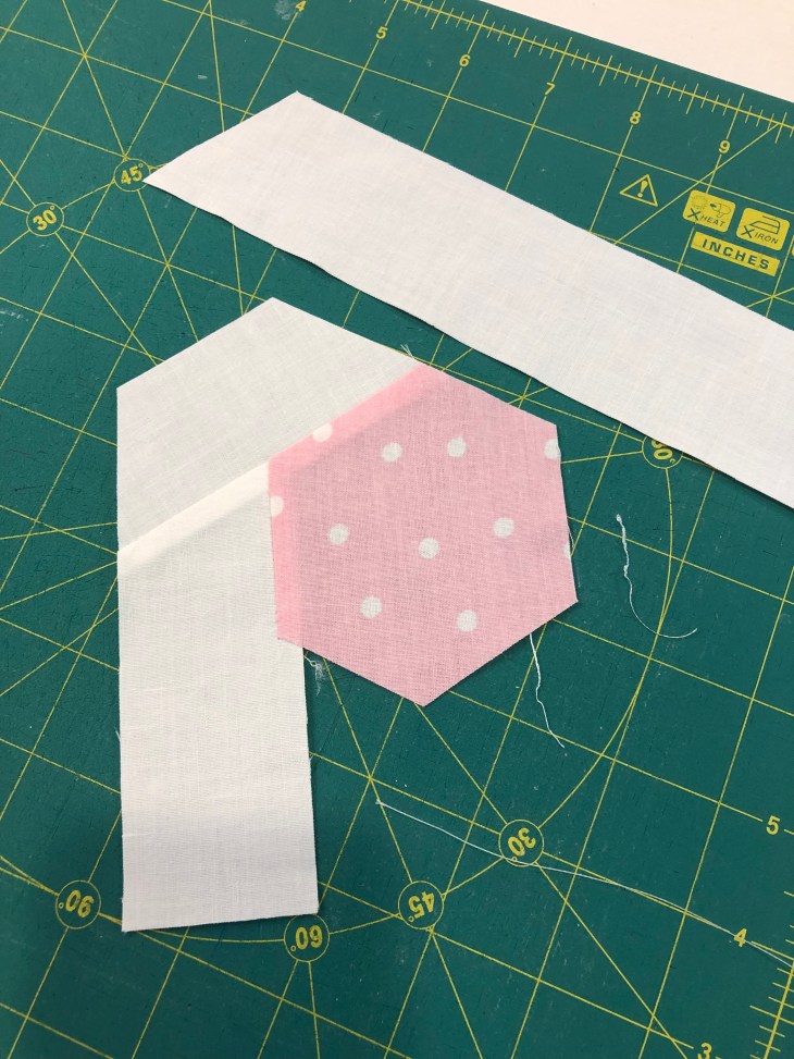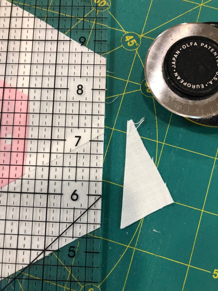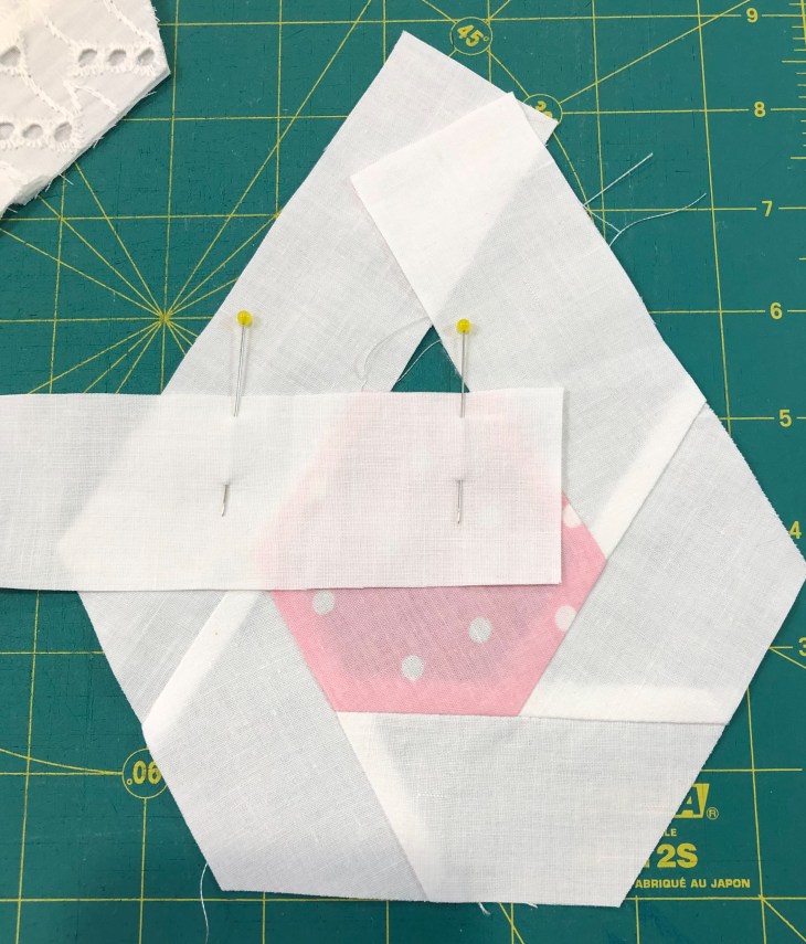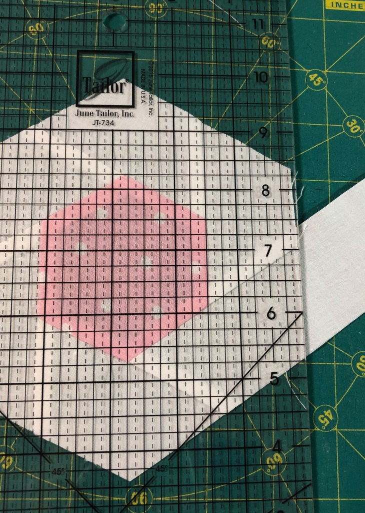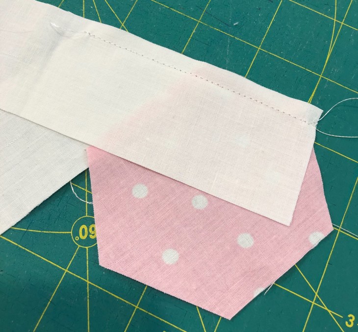 In the example below I’m cutting 3 fan shaped patterns that will make the large (think about 4 1/2″ tip to top) Strawberry pin cushion.