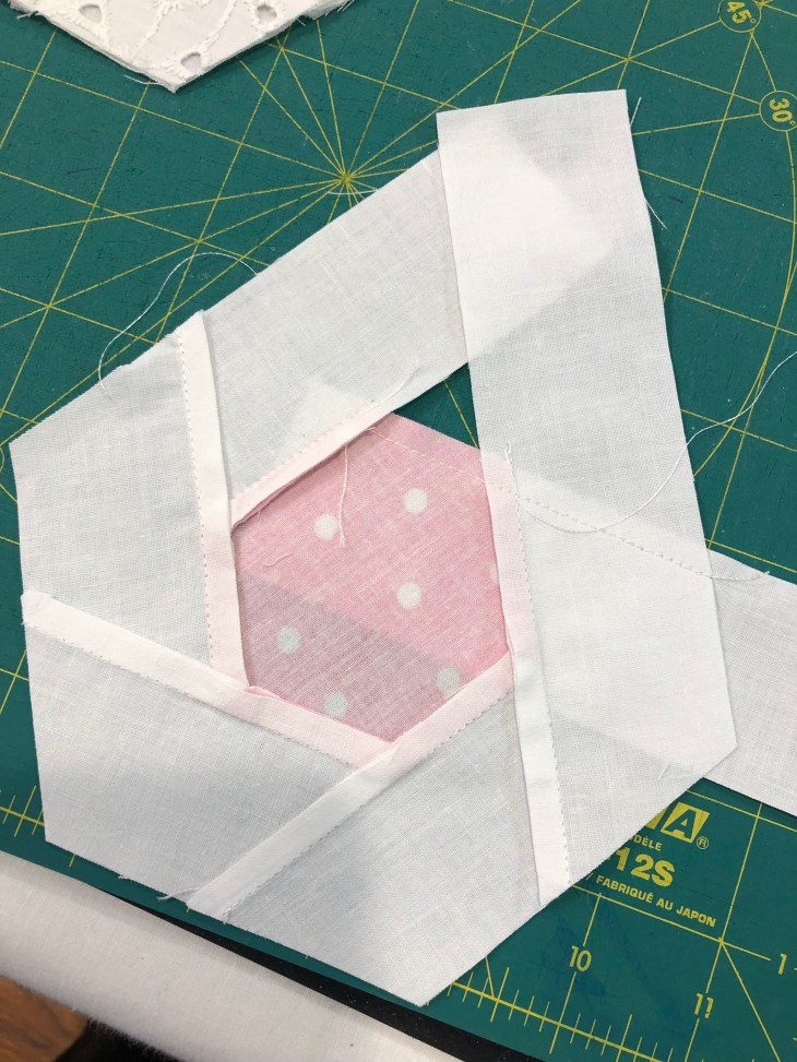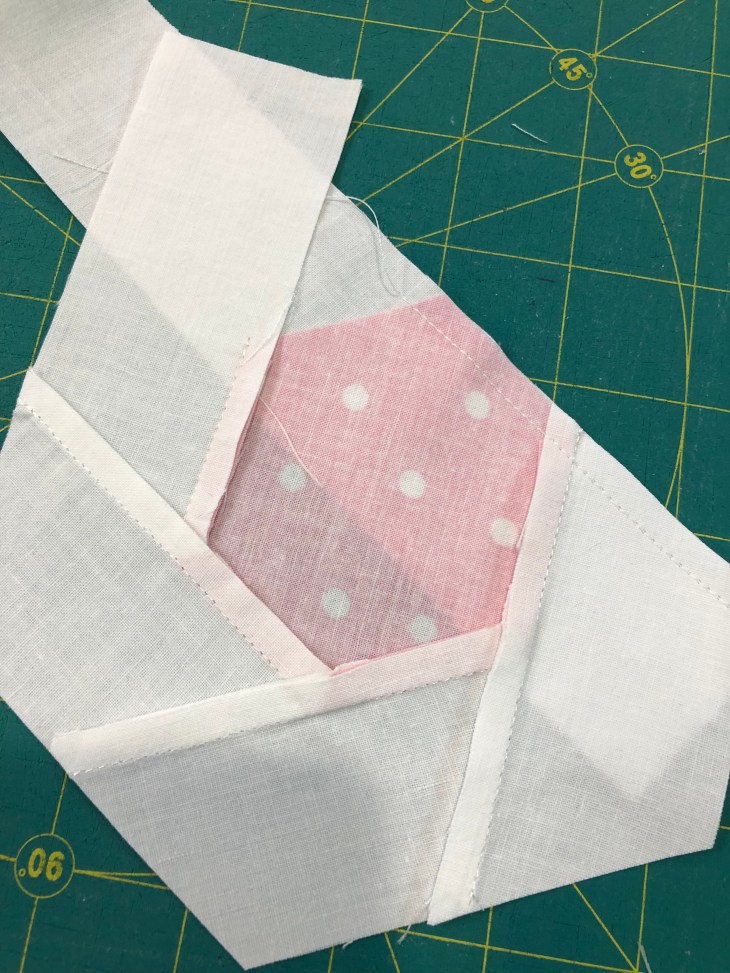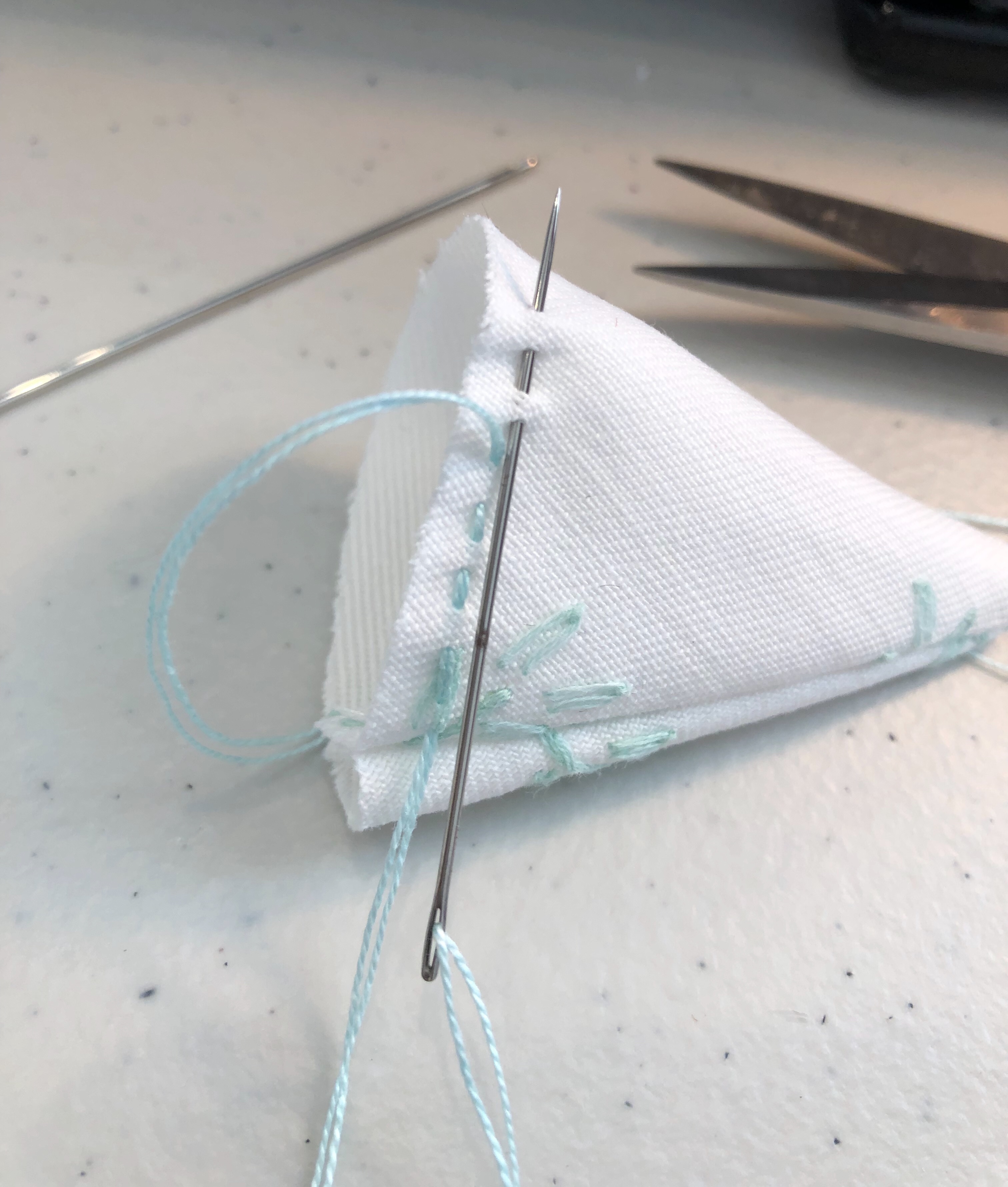 I also discovered that if the 4 pieces are cut on the bias, they are easier to manipulate into unique shapes as you fill and finish them.