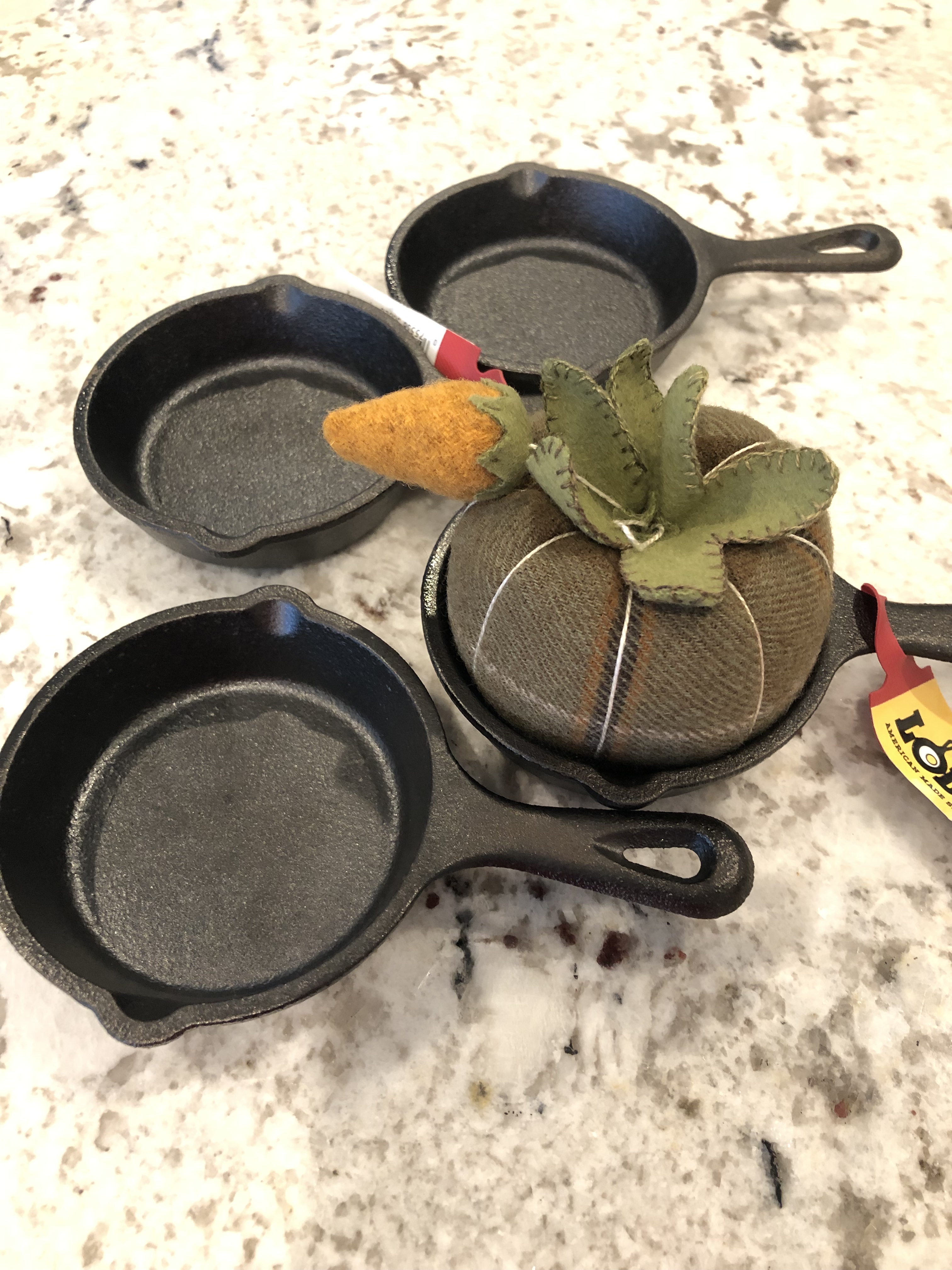 Yep, Fried Green Tomatoes! The Lodge company makes these tiny cast iron skillets. Their intended use is a Spoon Rest. They are priced at around $4.50 each and while available at many places, I found these at my local Academy Sports store.