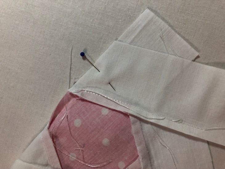 Here’s the 3/4″ opening I’ve left unstitched in order to add the filling.