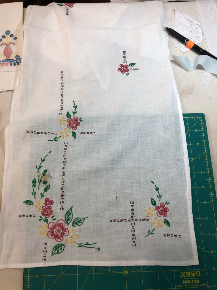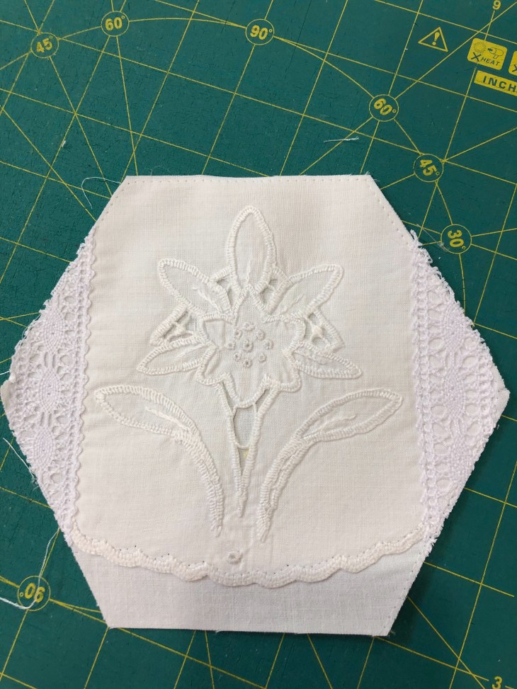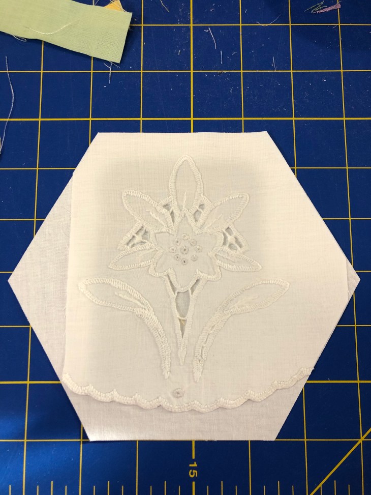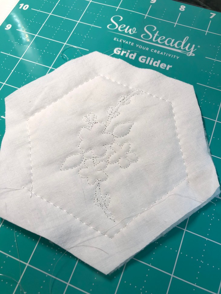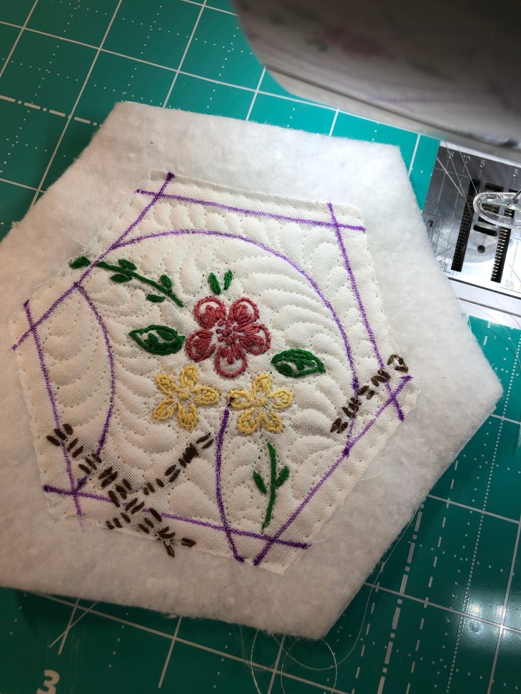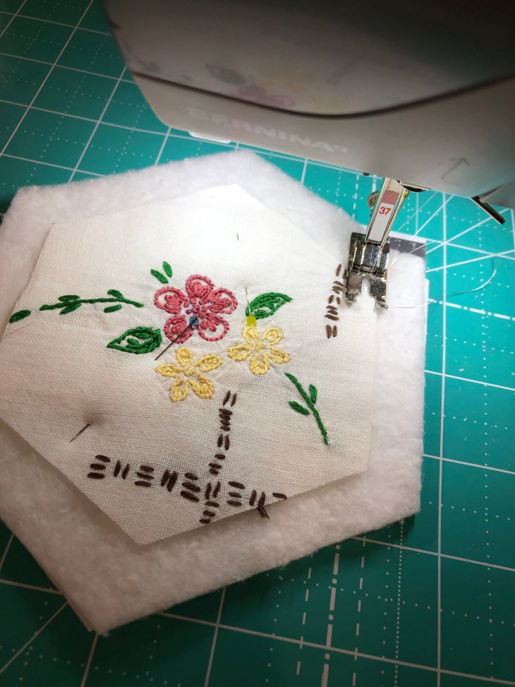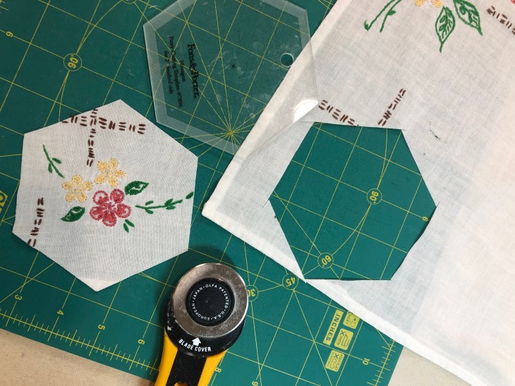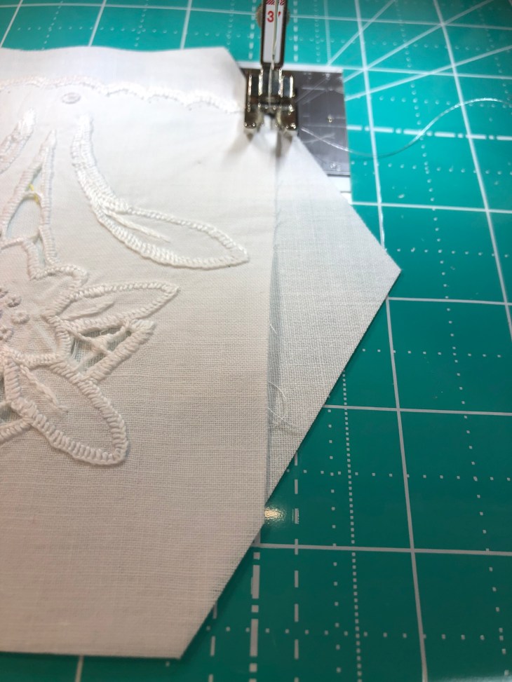 Another mostly all picture tutorial guiding you step by step through making a vintage linens hexagon (or really any shape you choose) pincushion. Let me know in the Comments section if you have questions. The purple marking pen I’m using-it’s both an air and water erasable by Leonis.