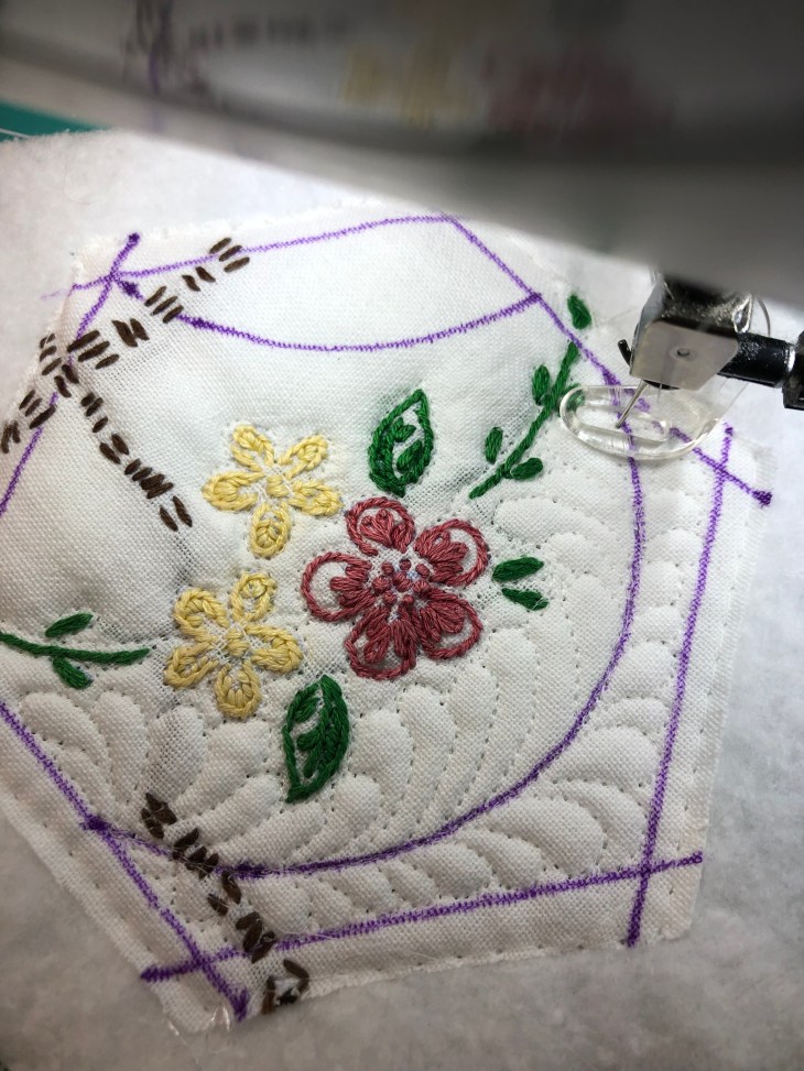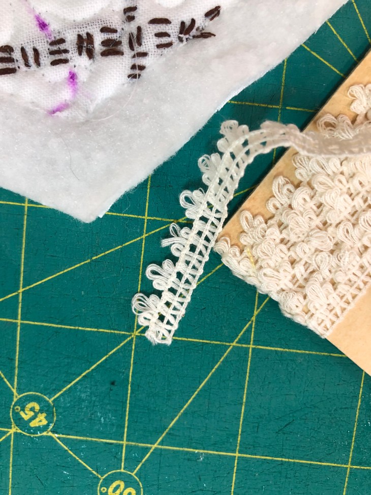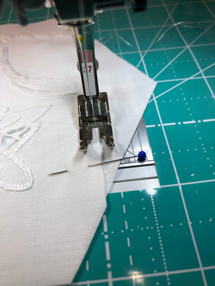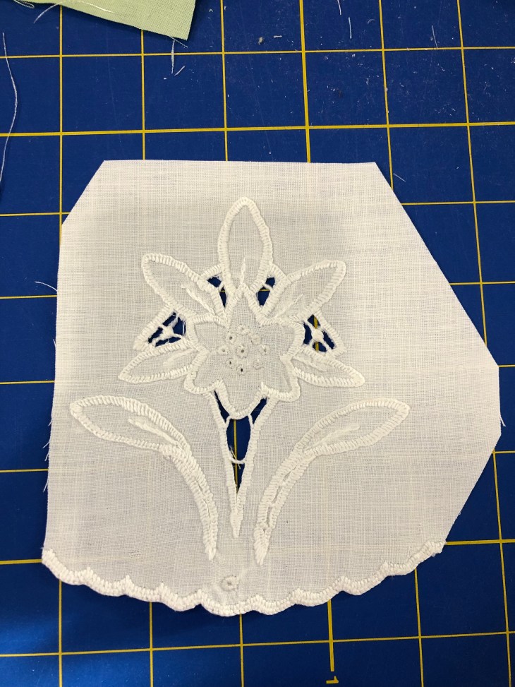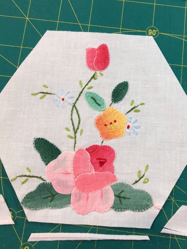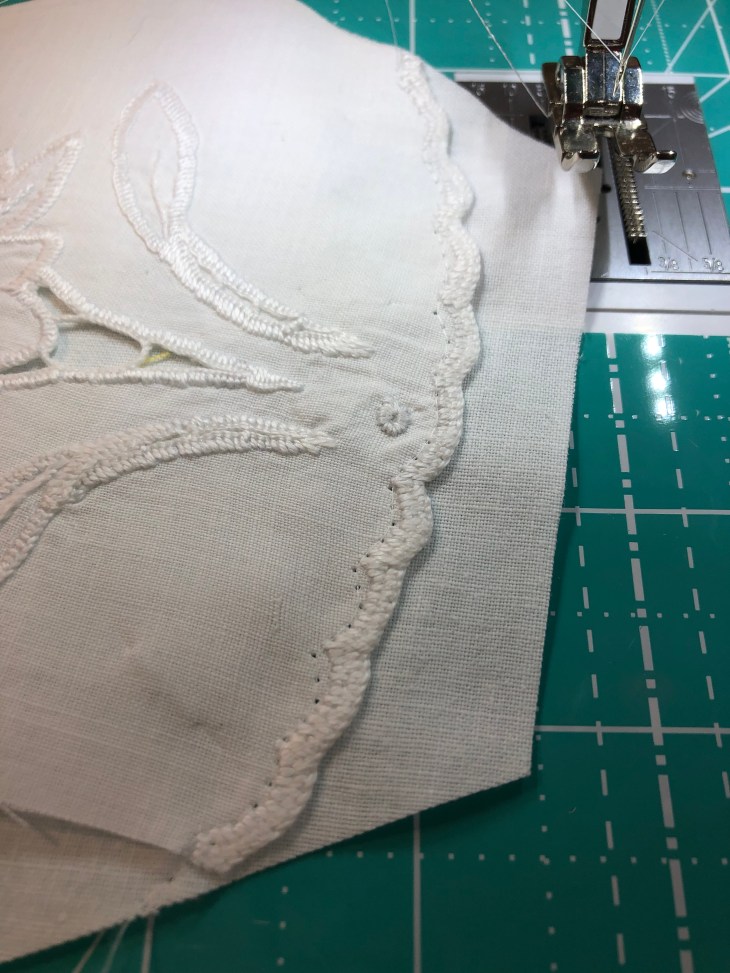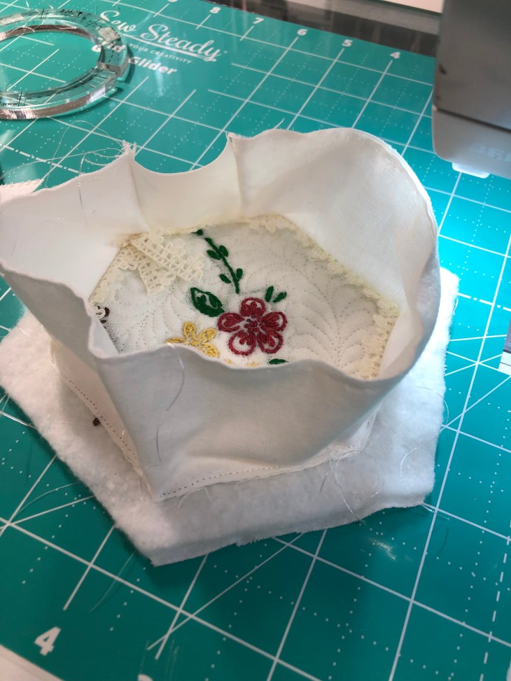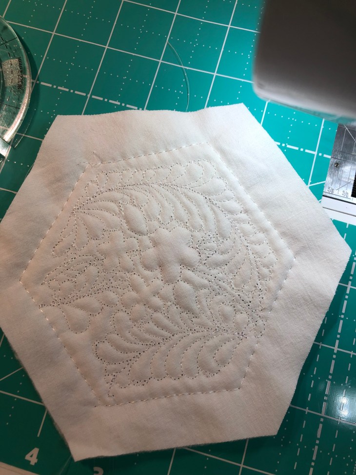 Another mostly all picture tutorial guiding you step by step through making a vintage linens hexagon (or really any shape you choose) pincushion. Let me know in the Comments section if you have questions. The purple marking pen I’m using-it’s both an air and water erasable by Leonis.
