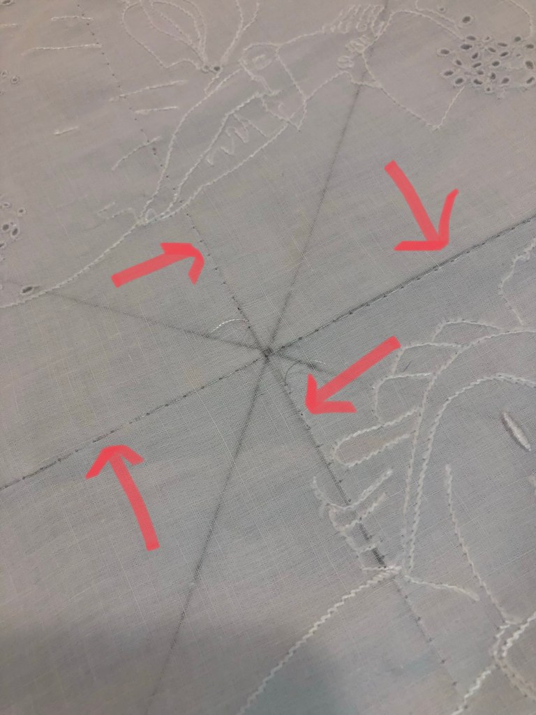Here’s a better picture where you can also see I’ve indicated on both the bottom and right side that my measurement is for a 24” square piece.