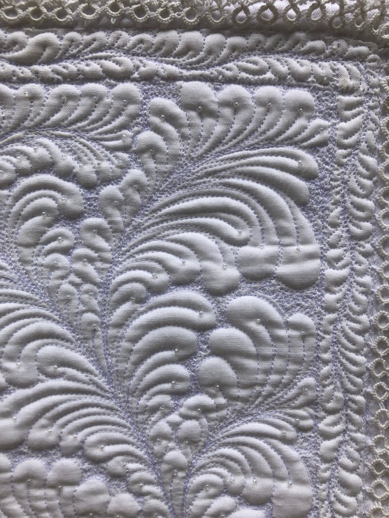 You know, White is actually very difficult to photograph! These last few pictures look like I’ve used light blue or lavender quilting thread…it’s white.