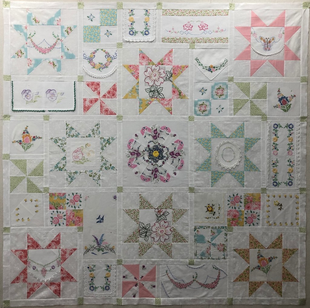 How will you know how long to soak items? I believe 24 hours is a good starting point. If you position your stained pieced so that you can have a visual on the bad areas, you will know if they’ve been in the tub long enough. Once I’ve either become terribly impatient or it’s evident the stains are gone, I carefully pour out the soak water and drain the linens/quilt on a colander in a sink for an hour or two. I am a huge advocate of time management and as I never seem to have enough time, I also advocate for the convenience of the washer/dryer with vintage pieces. My soaked and drained pieces go directly into my front load washing machine. I use a fragrance-free laundry pod, normal cycle, warm water wash, cold rinse, high spin. I also add ¼to ½ cup of distilled vinegar to the fabric softener dispenser. What does the vinegar do? It will assist in removing any soap/detergent residue that might remain in the fibers and it will also soften the fibers a bit. Then it’s on to the dryer, normal dry selected and I toss in ½ of a fragrance-free dryer sheet.