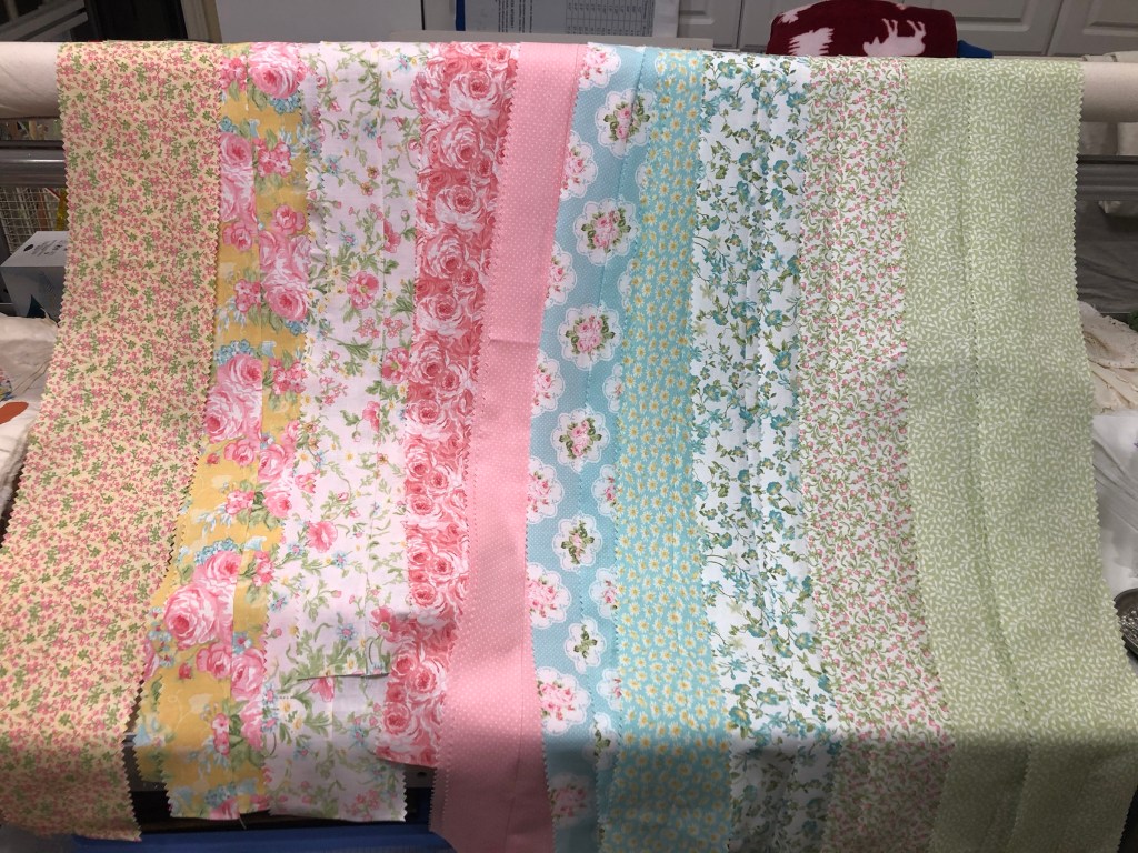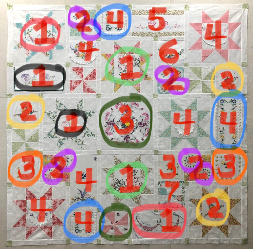 I like to soak my vintage quilts in a large plastic storage bin, on the kitchen countertop. I also like to fold the quilt so as to have some of the stains visible in the soak water so I fold them design side out. It does not matter how they are folded or how thick a quilt bundle you have, just as long as the entire quilt can stay underwater. I lay my quilt out on the floor, fold in half width-wise three times, four of it’s still too wide for the container. I then fold from top to bottom two or three times, always checking that my quilt bundle will fit down in my container freely. Once I am happy with the folded quilt, I prepare the soak water and slowly, very slowly lower the folded quilt into the water. Why slowly? You need to allow air to escape the quilt bundle. Once the fibers are wet, they will swell and will no longer freely allow the trapped air to escape because this trapped air will not allow you item to stay submerged. Now just know that while you’ve done your best with the air, you will probably have to weigh down your quilt with something heavy like a ceramic baking dish or smaller plastic containers (with lids) full of water. Did your big soaking plastic bin come with a lid? Use it! It will help to retain the heat of the tap water! Again, the amount of time needed to soak a quilt depends entirely on what the stains might be, how badly the quilt is stained and how long the stains have been in or on the fibers. How do I get the big folded up quilt out of the water? I can either begin to bail out water using something like a large measuring cup or I tip the pin allowing water to flow into my sink. I prefer the latter. Once the bin is tipped sideways I let the water drain for at least 30 minutes. By this time the quilt has folded over on its self again and is usually in the shape of a wet cylinder. I carefully pick up the wet cylinder and place it on end standing up in a colander, still utilizing my kitchen sink. I let the quilt continue to drain for at least an hour at which time I carefully move the quilt to my front load washing machine. Remember above I gave the parameters for washing linens, I use the same selections for a quilt and yes, I put the quilt in my dryer with ½ of a dryer sheet.