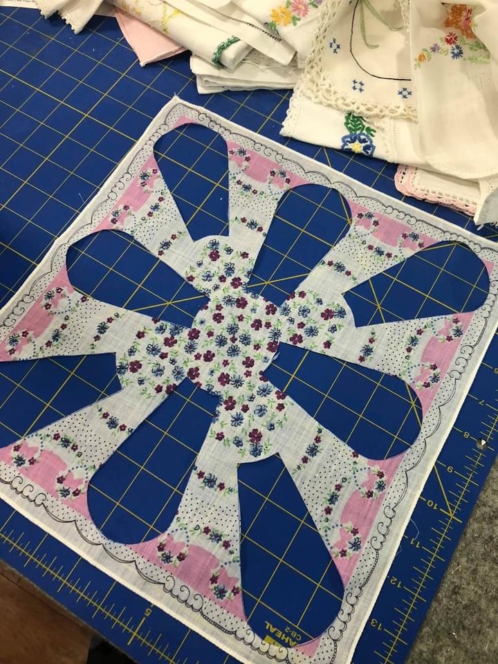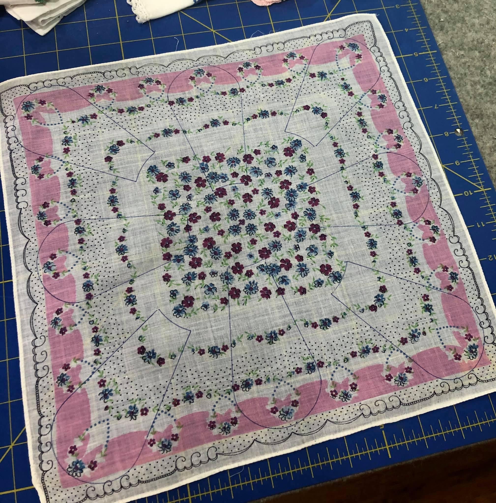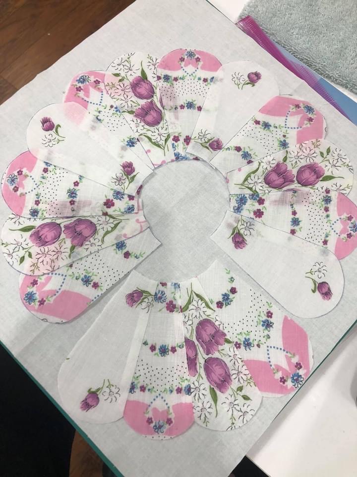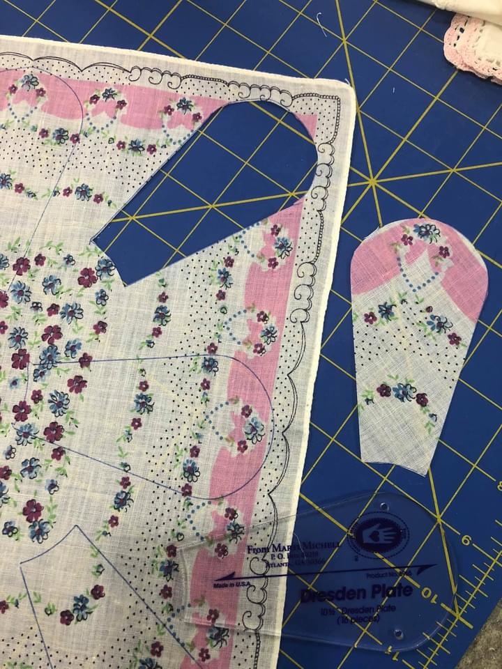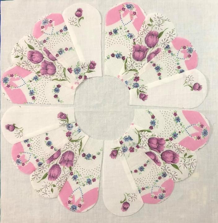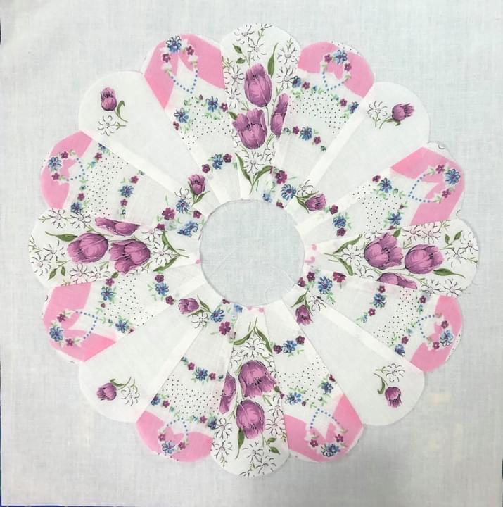 Now we will talk about making a Dresden Plate using only one vintage handkerchief.