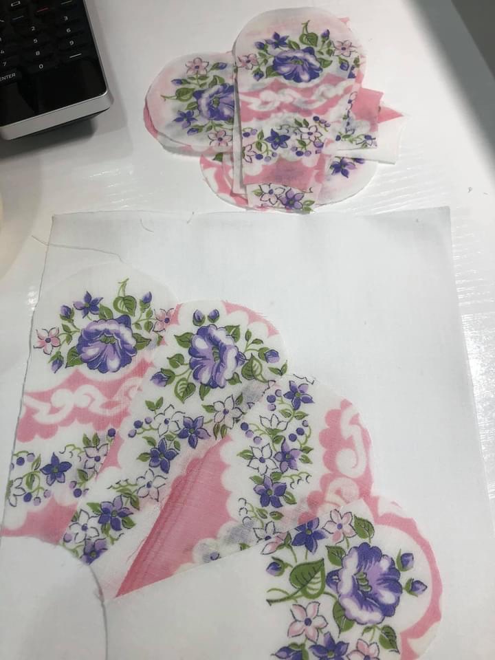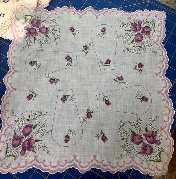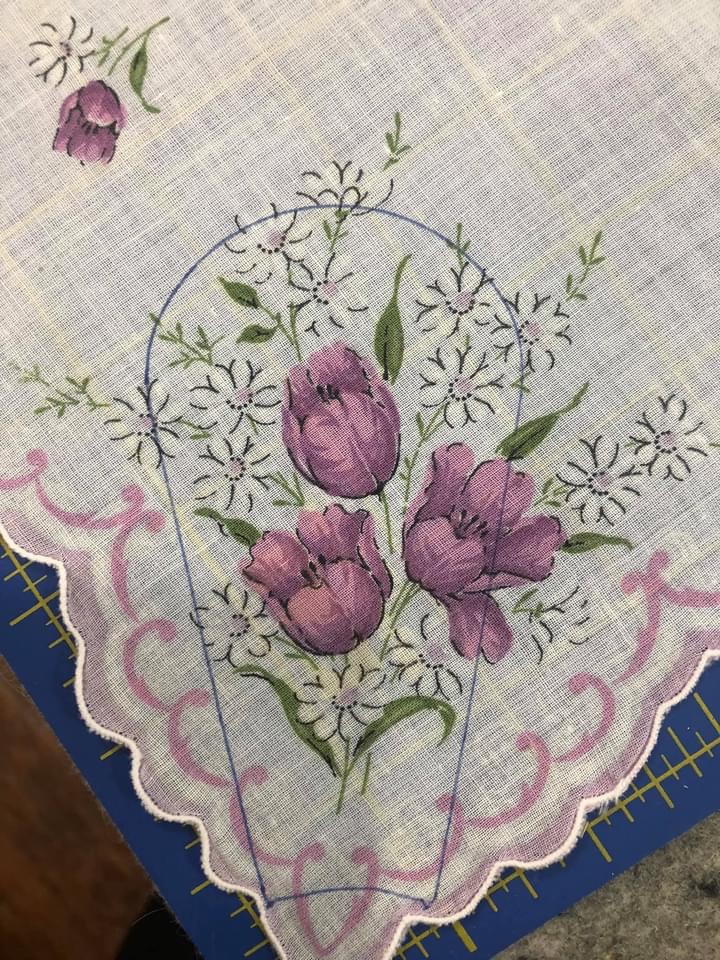 1. Rhonda, this is SO beautiful! I want to try it. Do you use any kind of backing/lining since the hankies are usually so thin & finely woven?