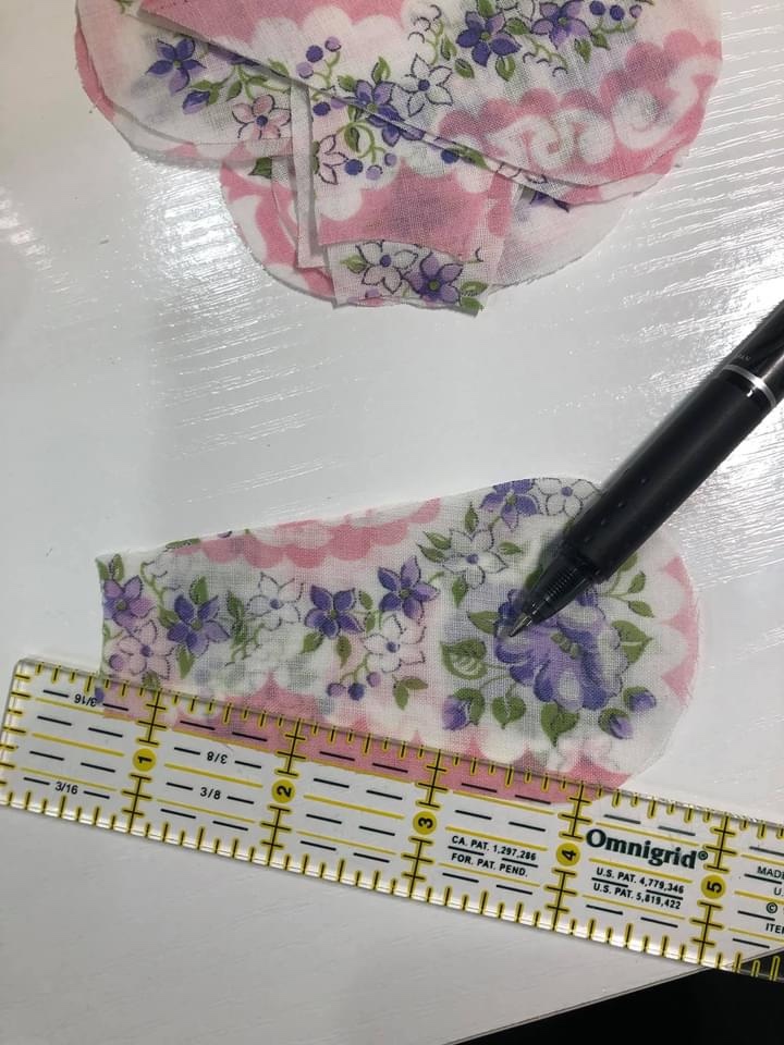With raw petal edges together and using a black Frixion Pen, I mark a 1/4” seam allowance.