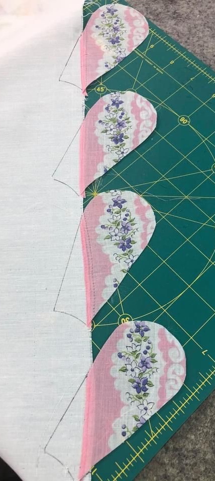 From the first of 2 vintage handkerchiefs I have marked 2 sets of matching Dresden Plate petals.