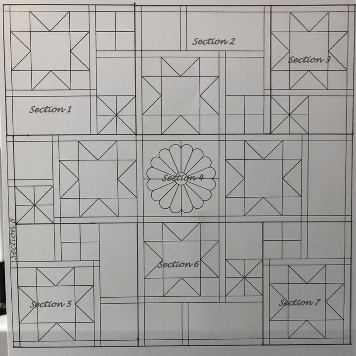 Note that Section 8 is a peculiar one, it is a strip made up of only cornerstones and sashing strips down the left edge of your fabulous creation.