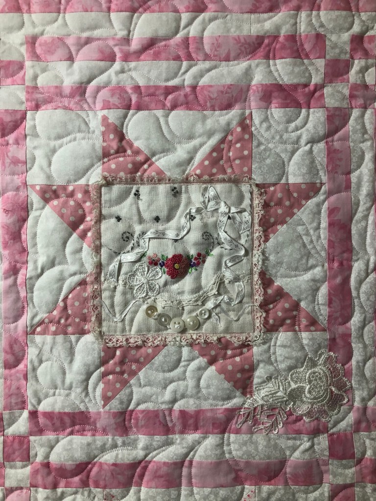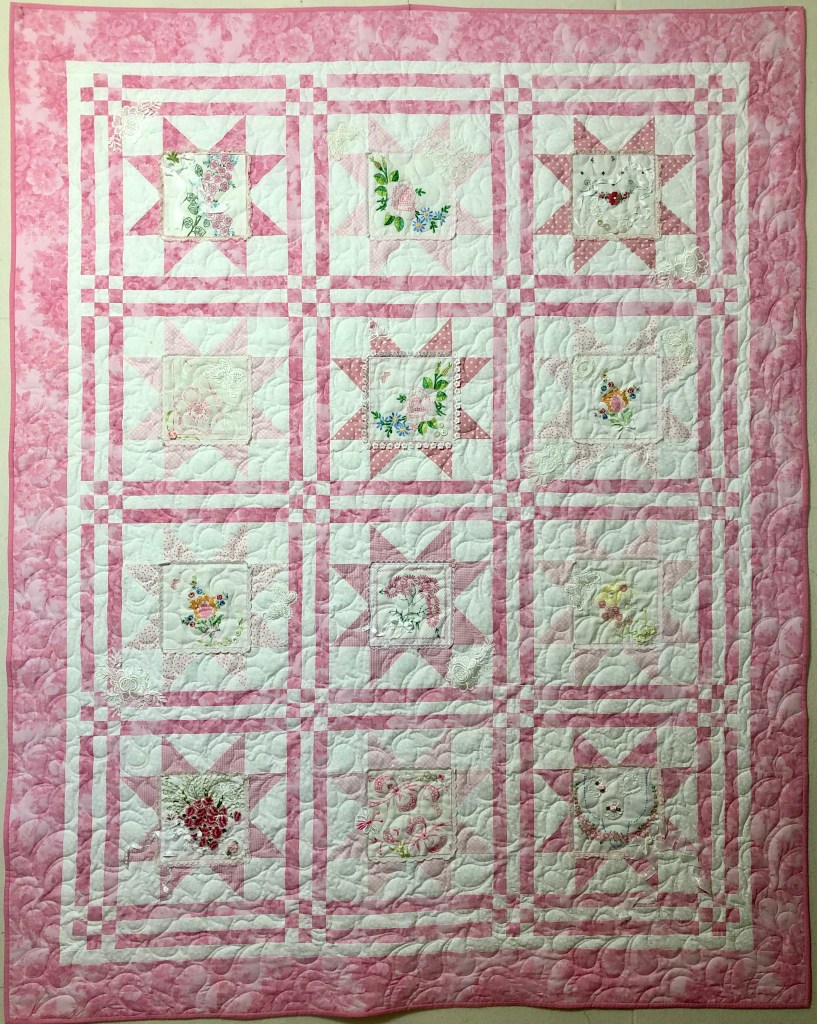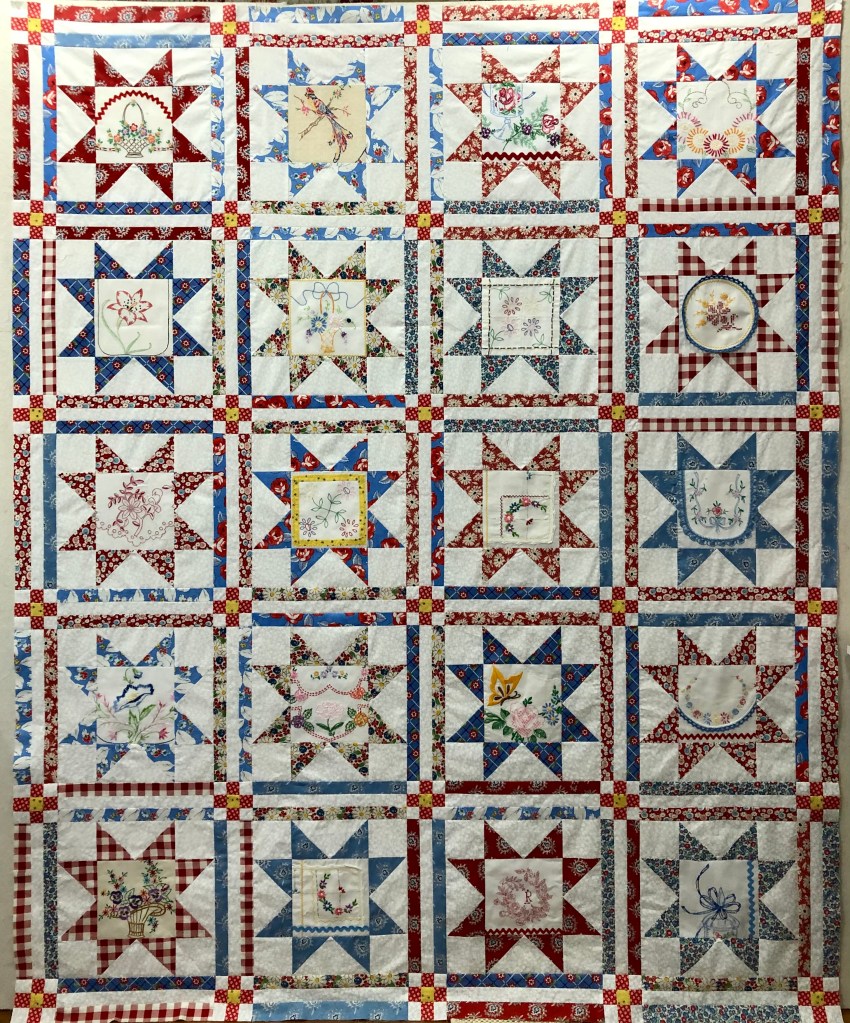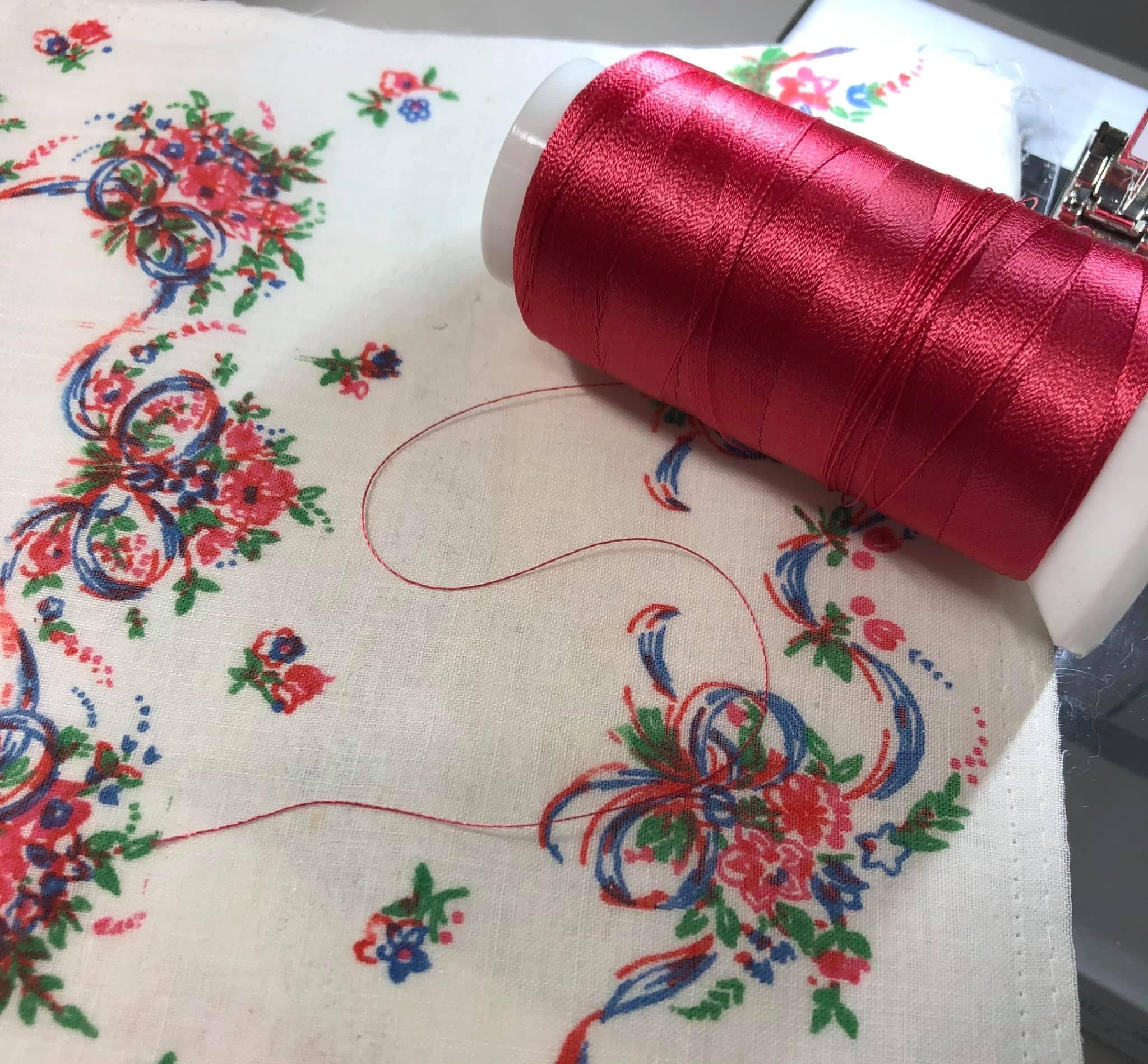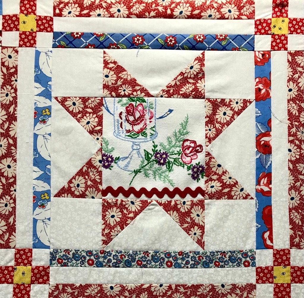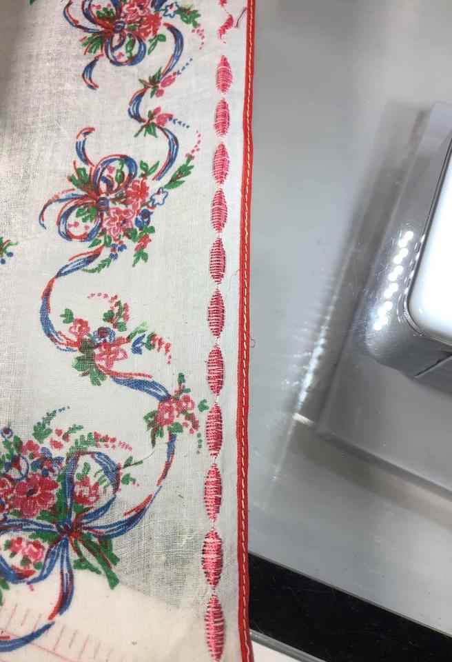Embellishing your quilt blocks can take on many forms, one of which is utilizing the built-in stitches on your sewing machine. But sometimes you might want to stitch on something as sheer/light weight as a vintage handkerchief. You have a few options, let me take you through two similar techniques I like to use. They each involve using my friend Elmer…Elmer’s Washable School Glue. (I only have experience using the white glue, not the clear.)