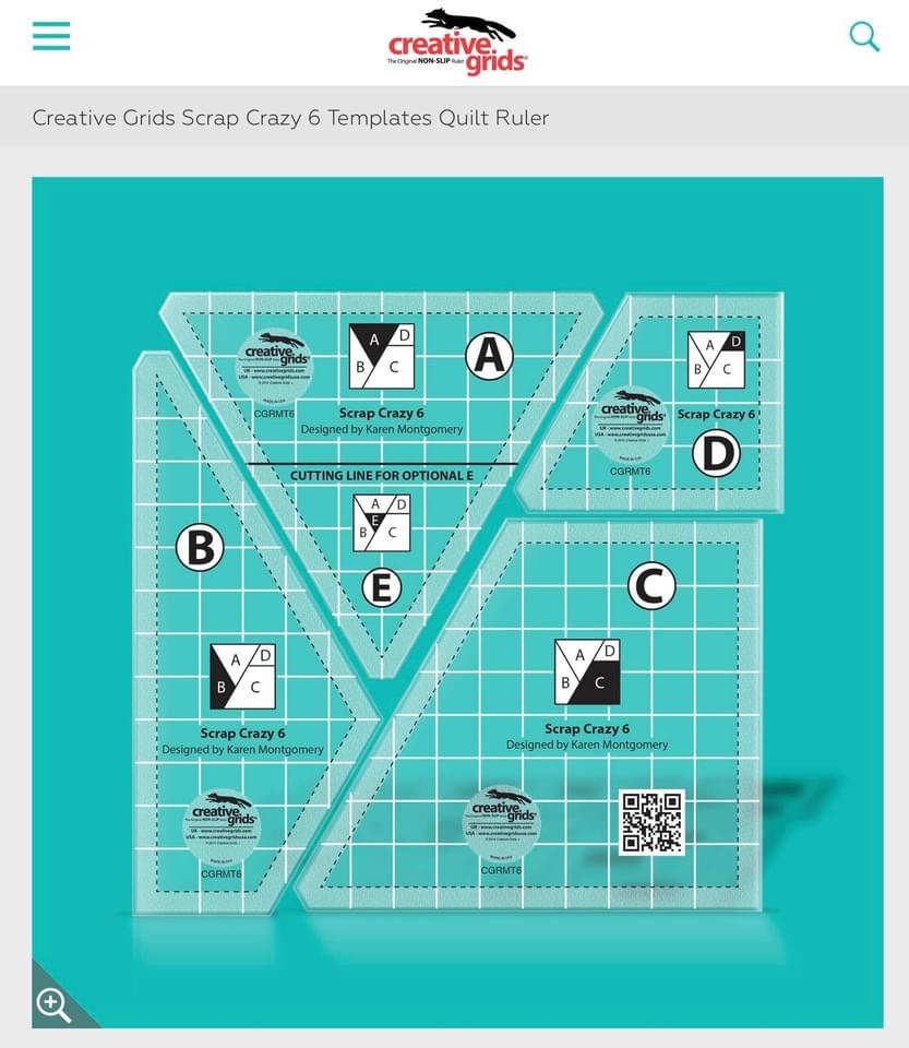 12 Crazy Quilt Block squares that would make fantastic Star Block centers.The Creative Grid template set I used to create most of the 12 crazy quilt squares.