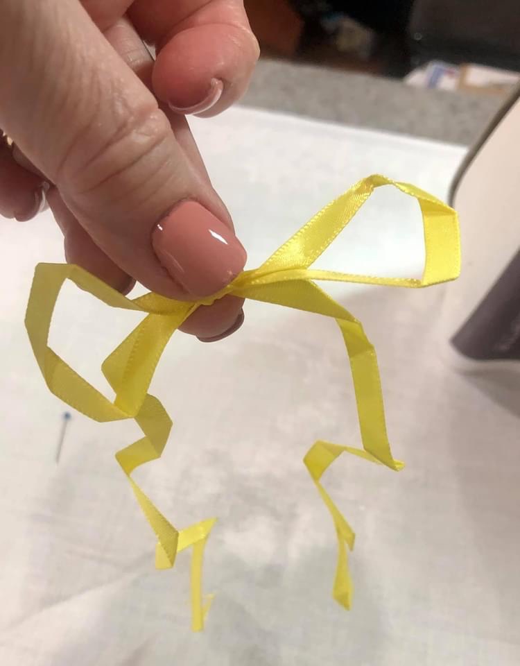 Hope this little pictorial tutorial will help if you should decide ribbon bow and streamers are just the perfect thing to embellish your quilting.