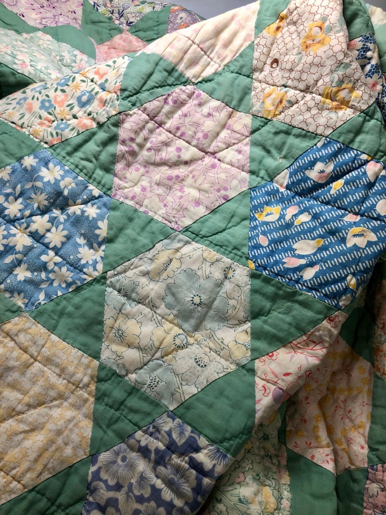 Hope this gives you ideas about using things that might not be “old” but will work so well with your Vintage Lattice Star (or any other) Quilt!