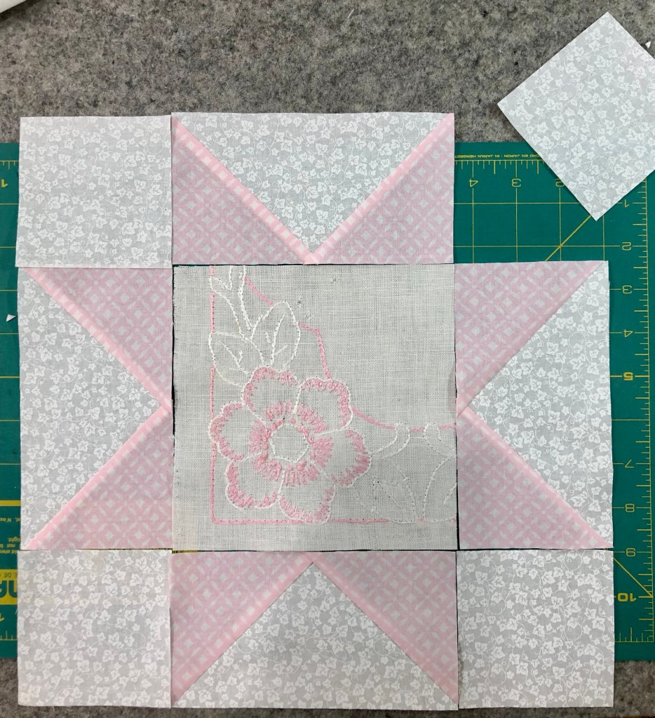 This picture below is from another project a few years ago but it gives you a visual for a Crazy Quilt star block center square.