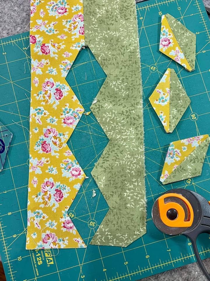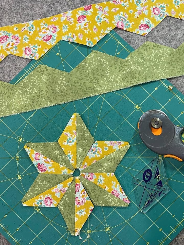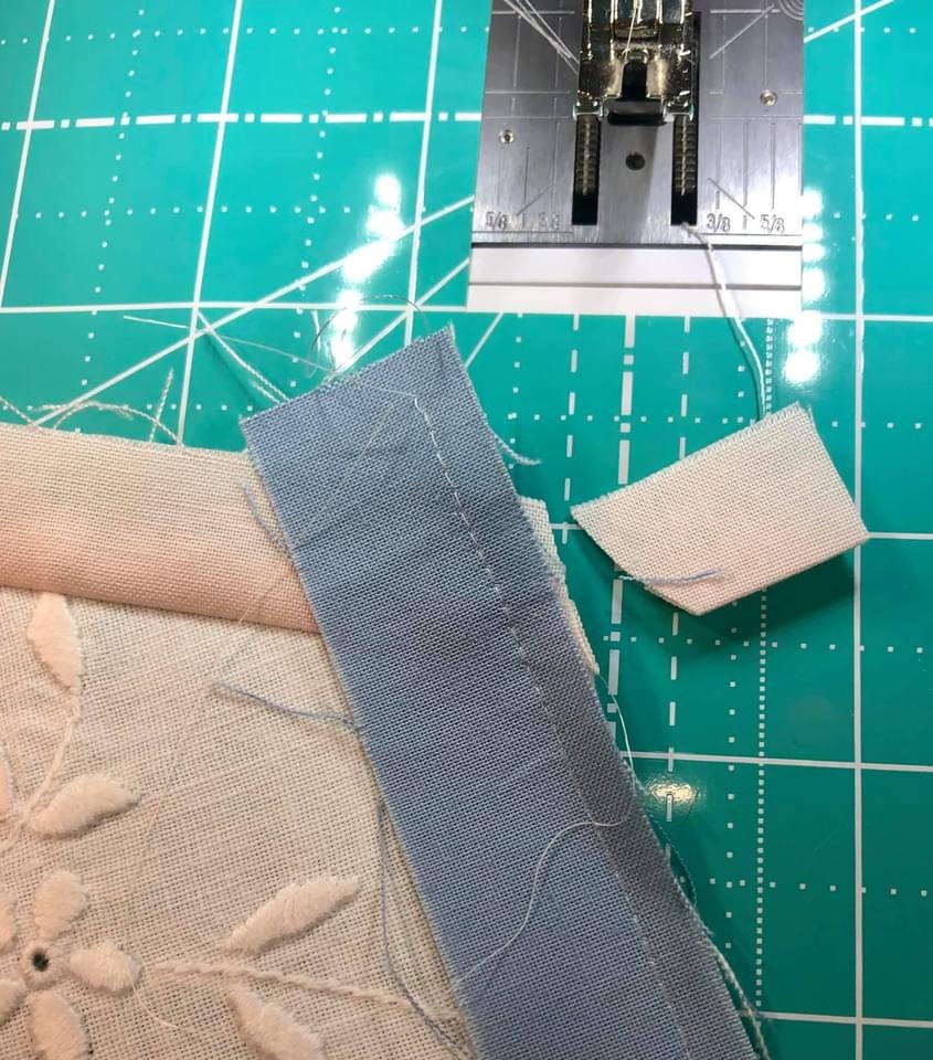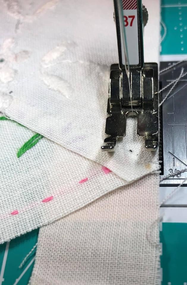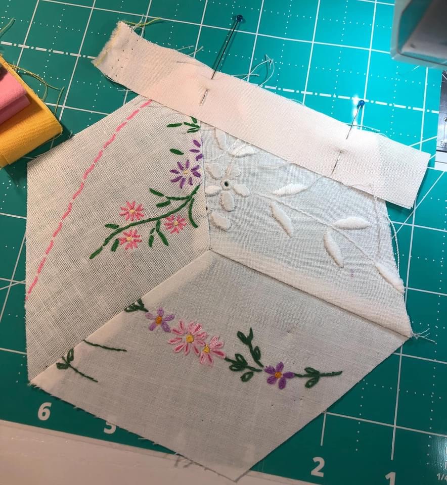 Each retreat will each feature 3 projects, the Pink and Green Vintage Linens quilt: