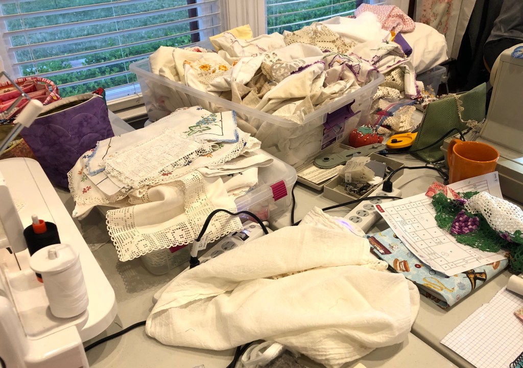 I’m so excited to announce two Vintage Linens Retreats for 2021! The dates? July 8-11 and Dec. 1-4. The very idea of maybe, just maybe getting back to normal makes my heart happy and wouldn’t it be fun to work with Christmas themed vintage linens at the December event!