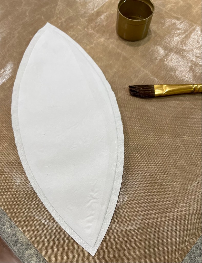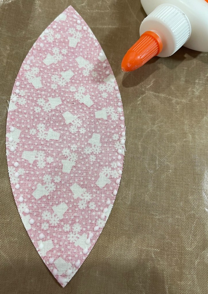 A year or so ago, using my Accuquilt tools, I cut out 30-40 melon shapes from reproduction fabrics. Pulling these shapes out of storage I began to lay them out on the quilt top surface and decided on this placement. Of course my Elmer’s Washable School Glue came in handy!