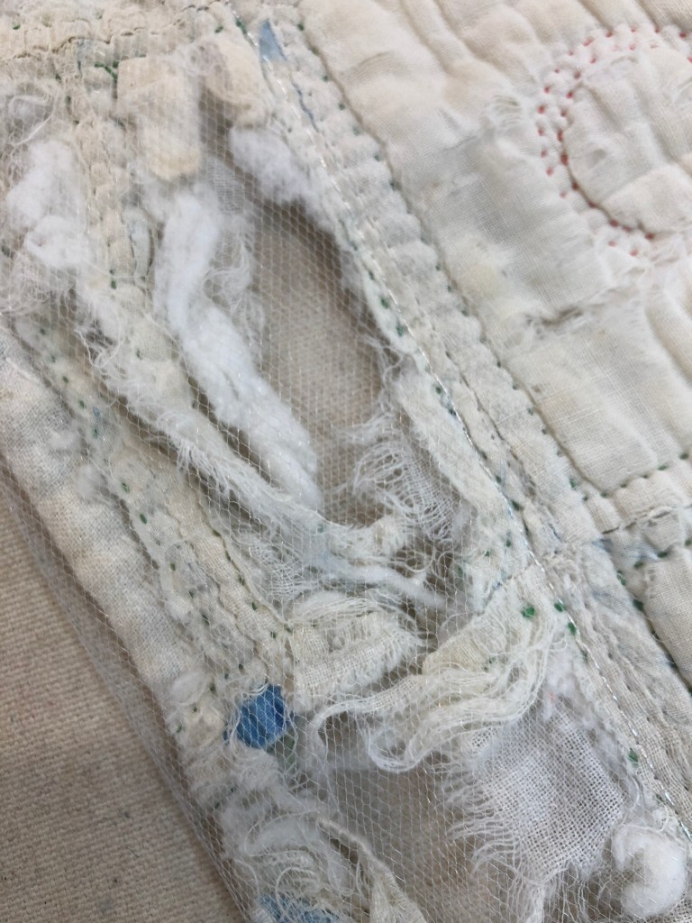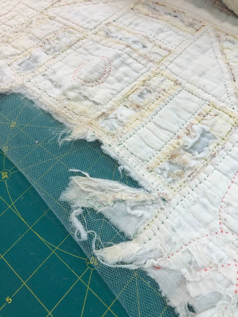 I’ve got a bit of work left to do in the body of the quilt, some on the front and a little on the back and of course then there’s the binding to replace.