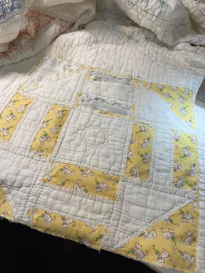 This quilt “save/rescue was one of the most challenging projects I’ve worked on in a long time. I had offered the quilt to 2 of my different retreat groups and with no takers I decided to work on this worn out piece myself. A great decision!