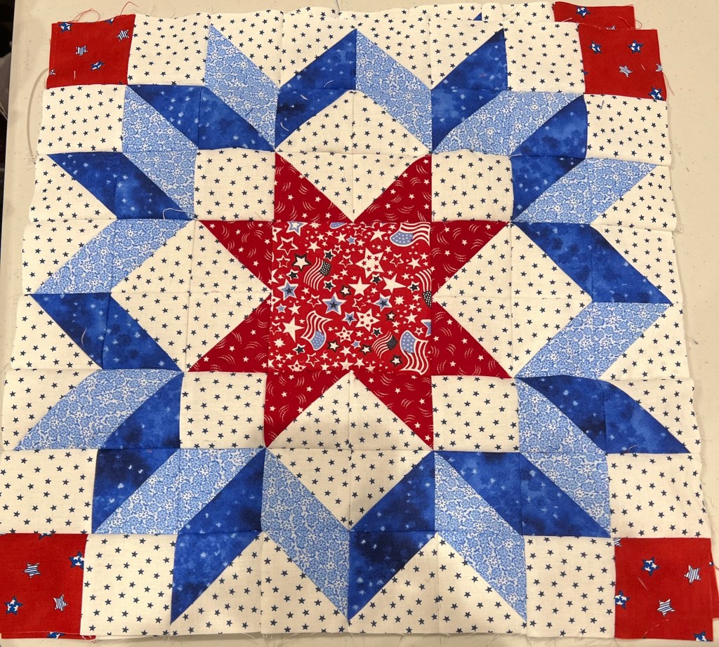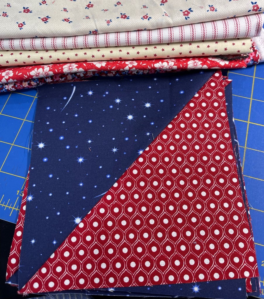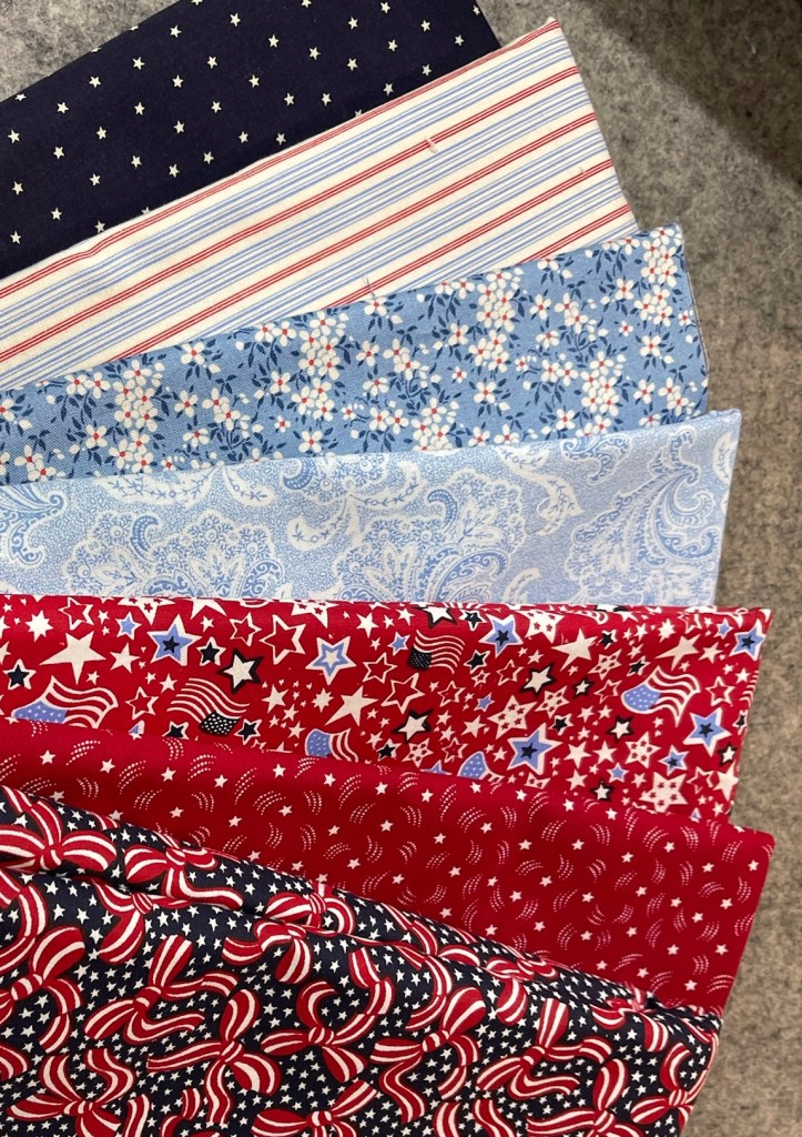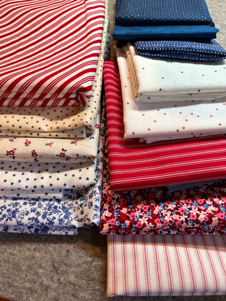 We realized we have enough red/white/blue/ivory fabrics to make 50 quilts! 🤣🤪