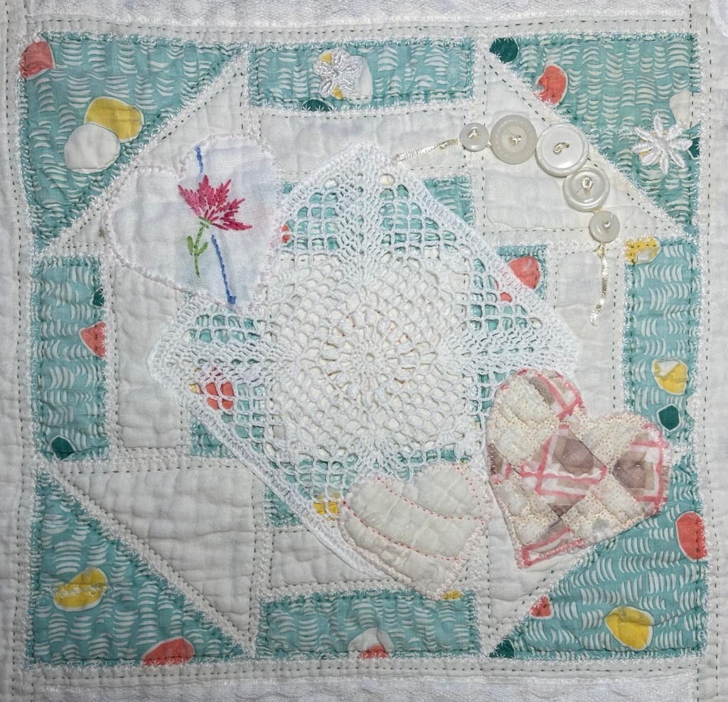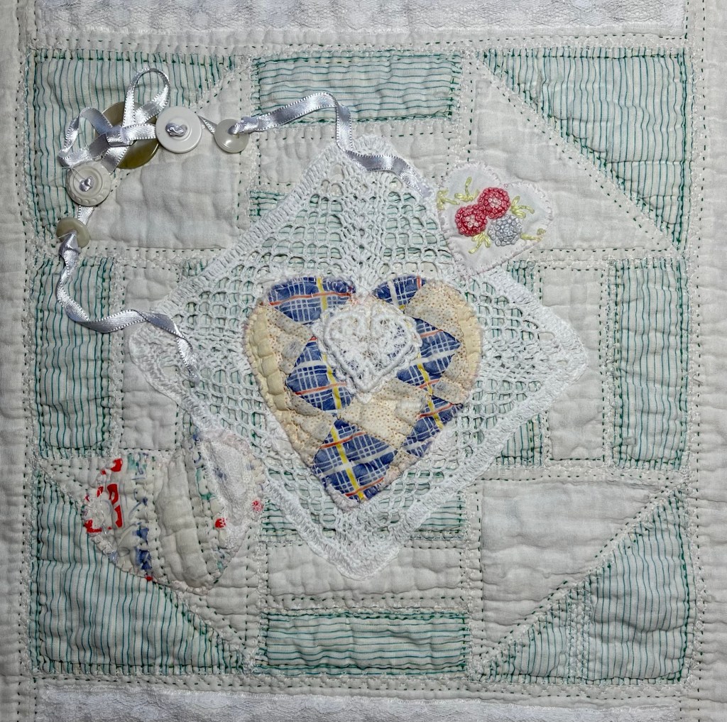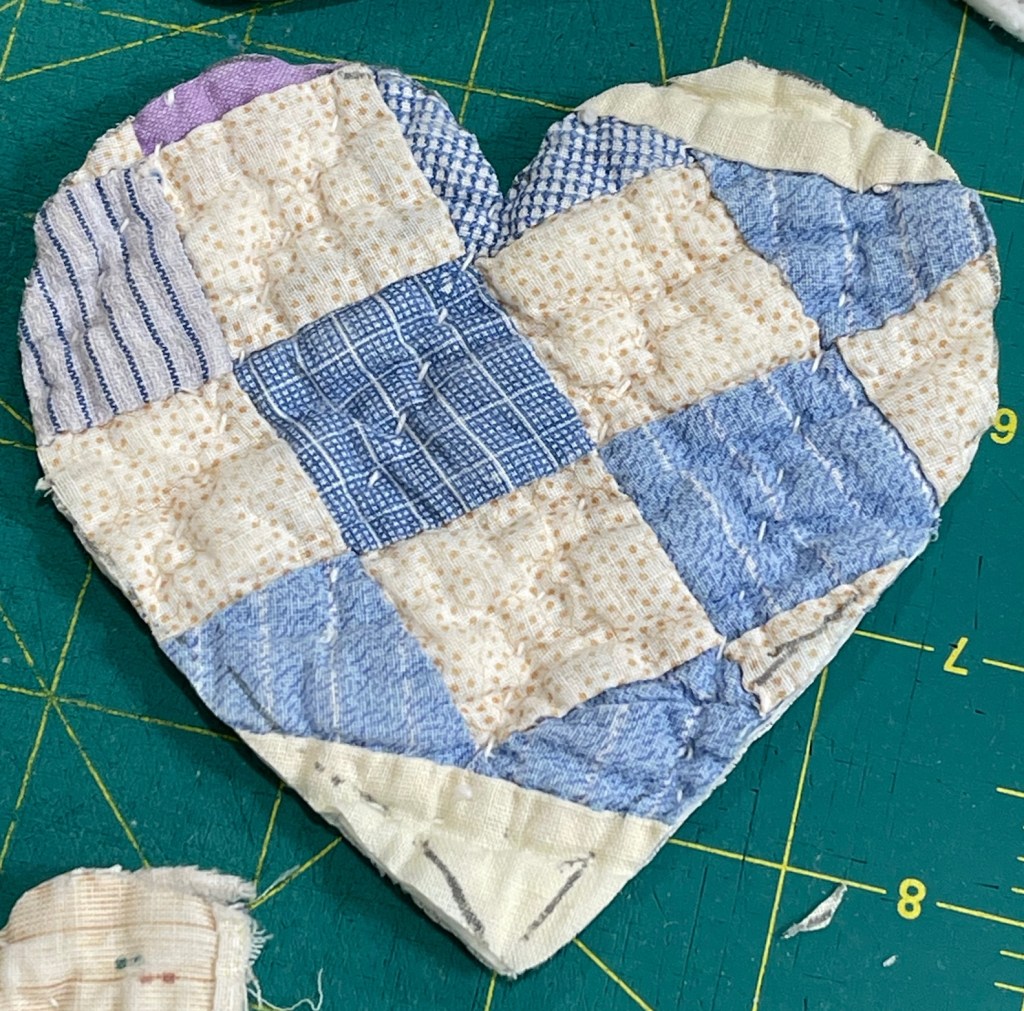 An eBay purchase, these cut up vintage quilt scraps will be perfect for cutting heart motifs of all sizes.
