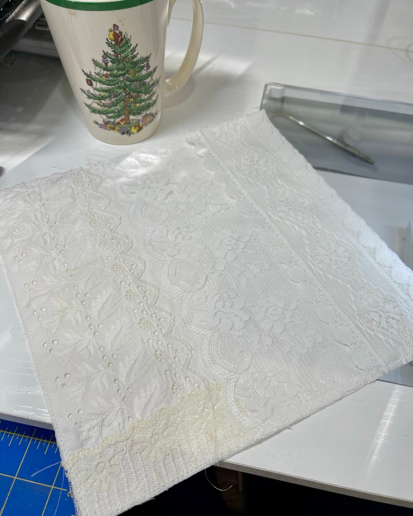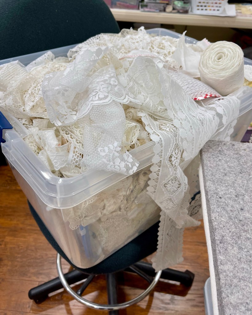 You remember this picture from an earlier blog post? I’ve not even made a dent in the laces and trims! Wonder how many quilts I could make from this container of treasures! ❤️