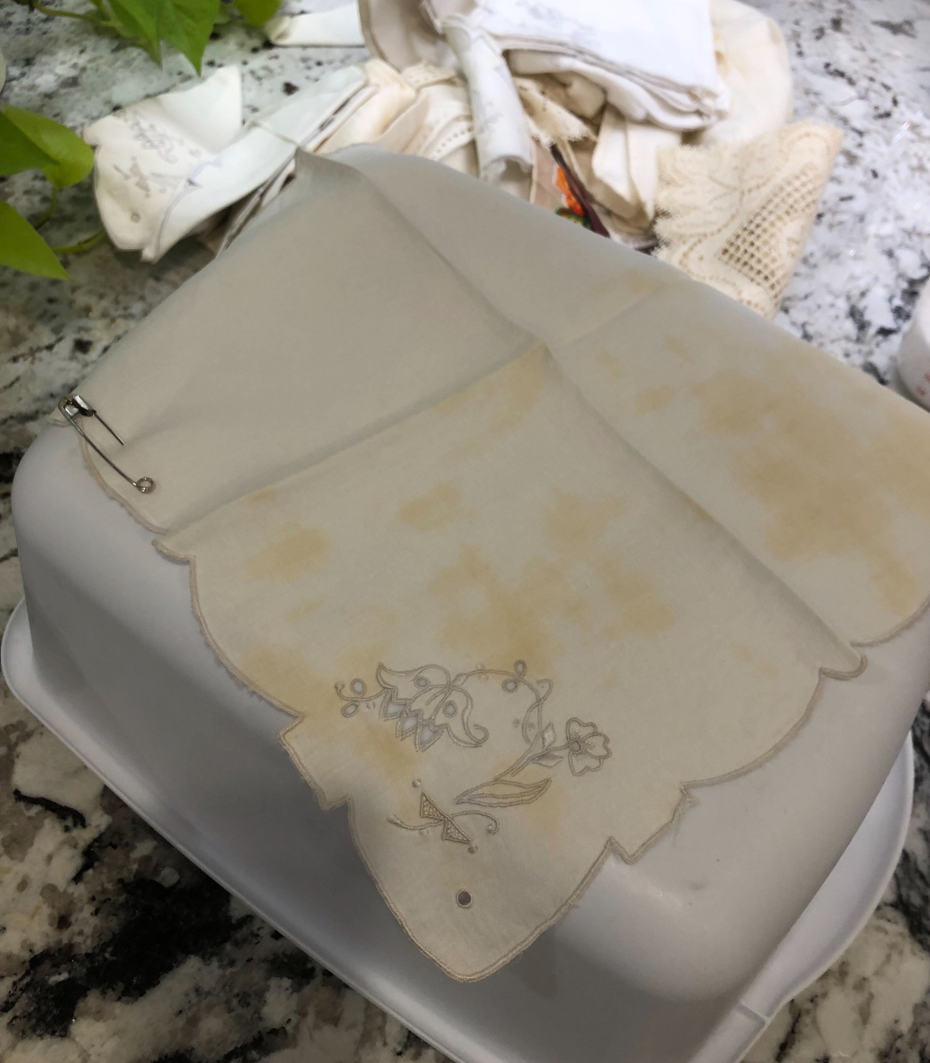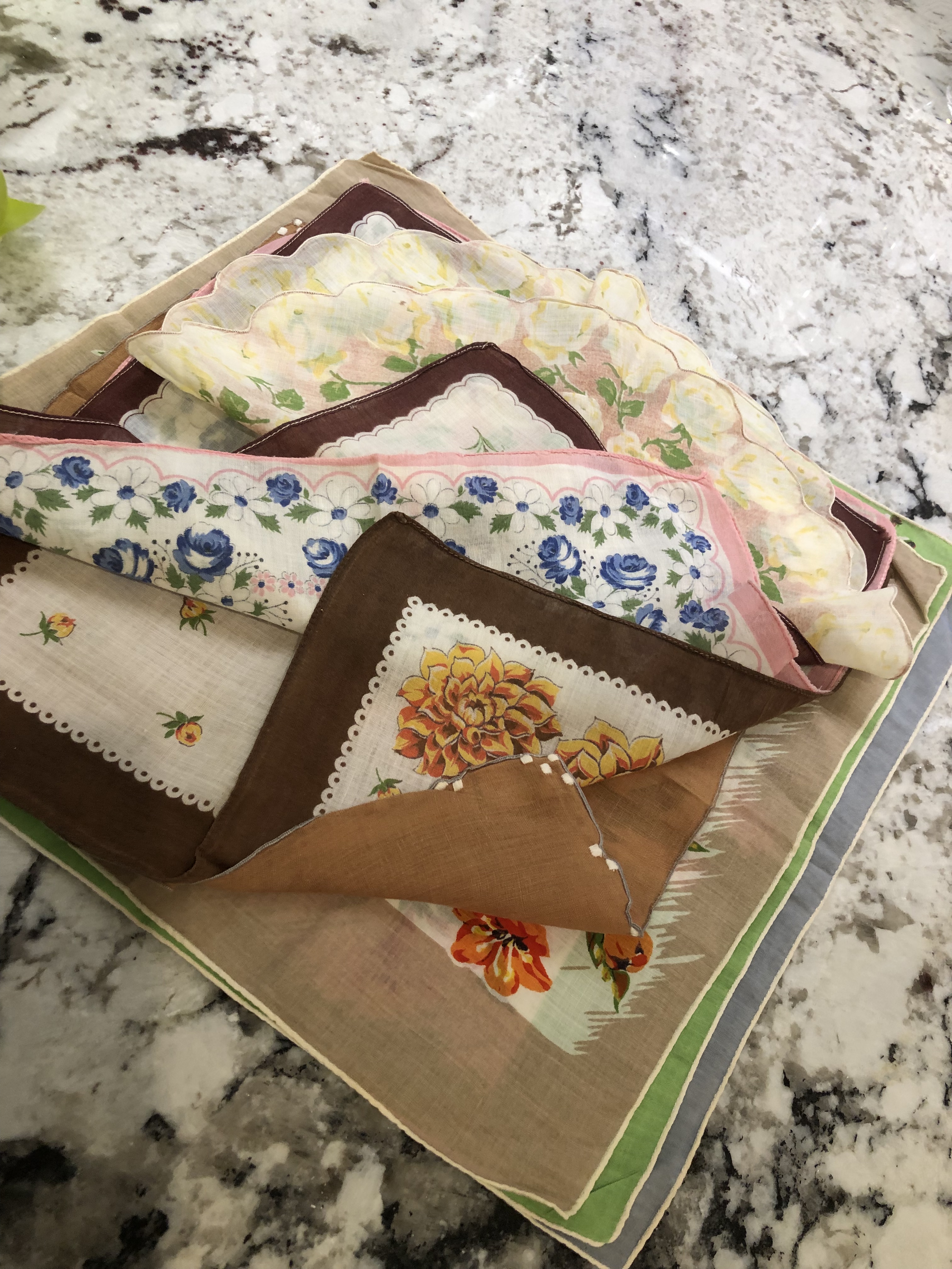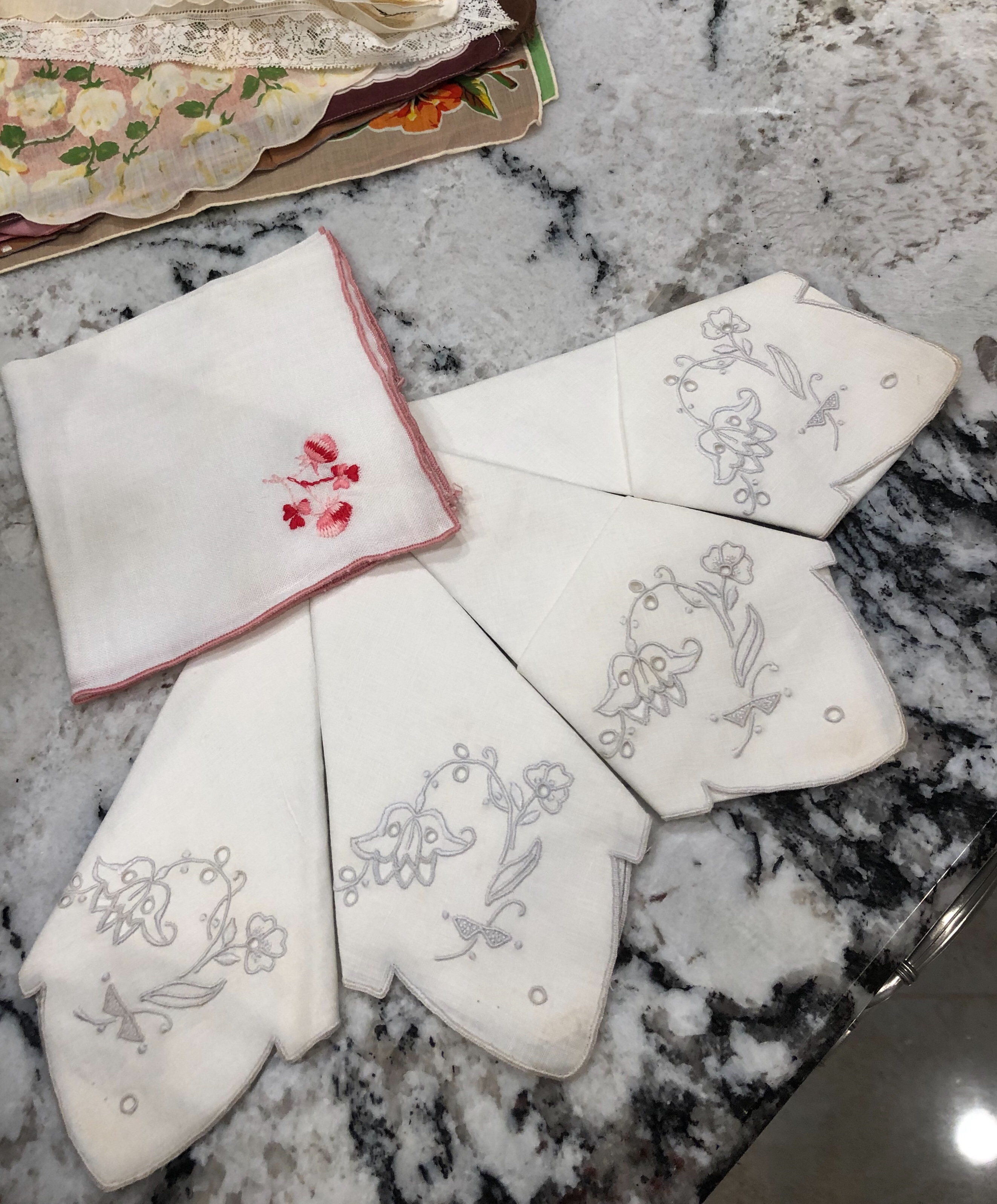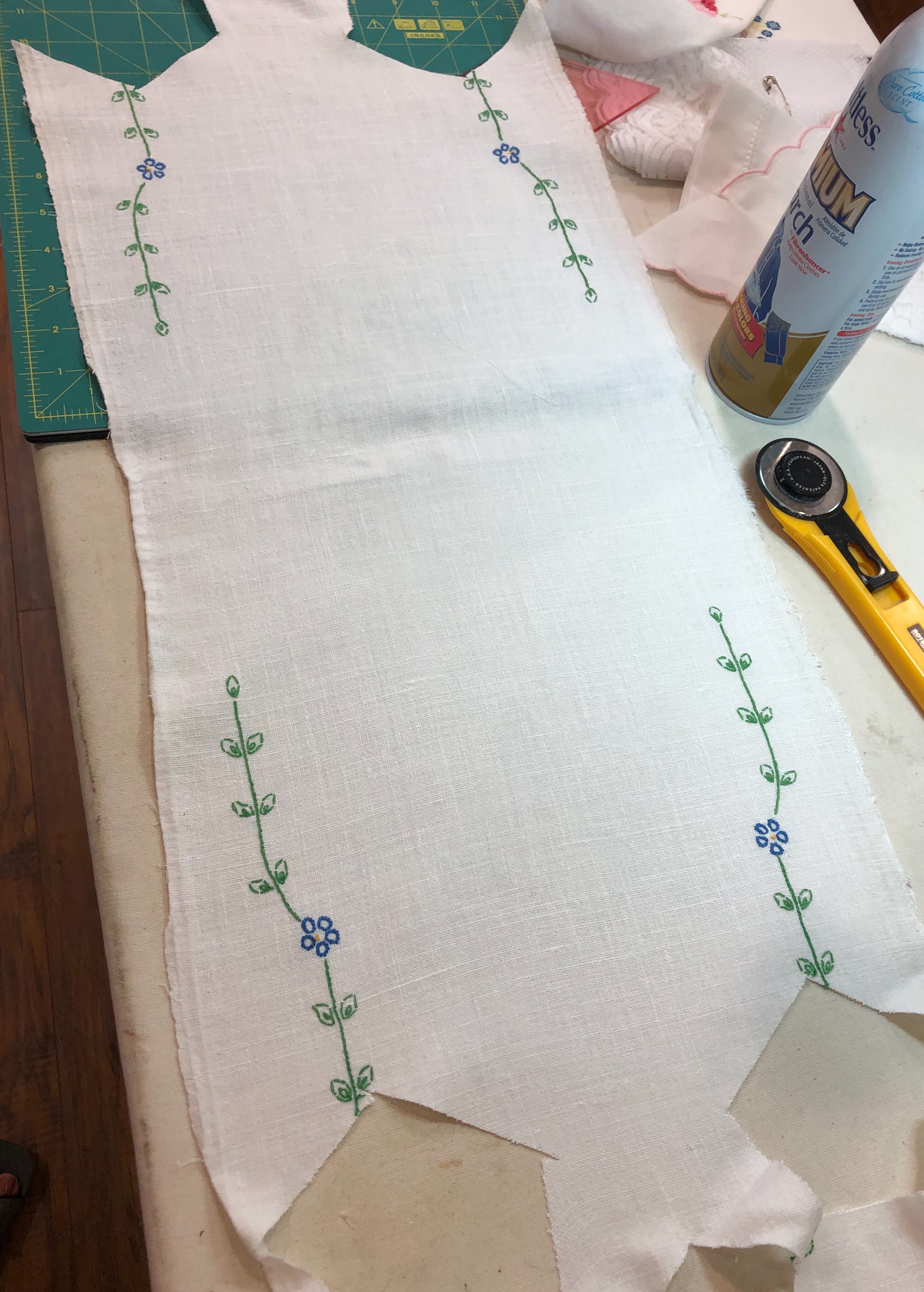 Above, the butterfly is new, the flowers are part of a vintage table topper.