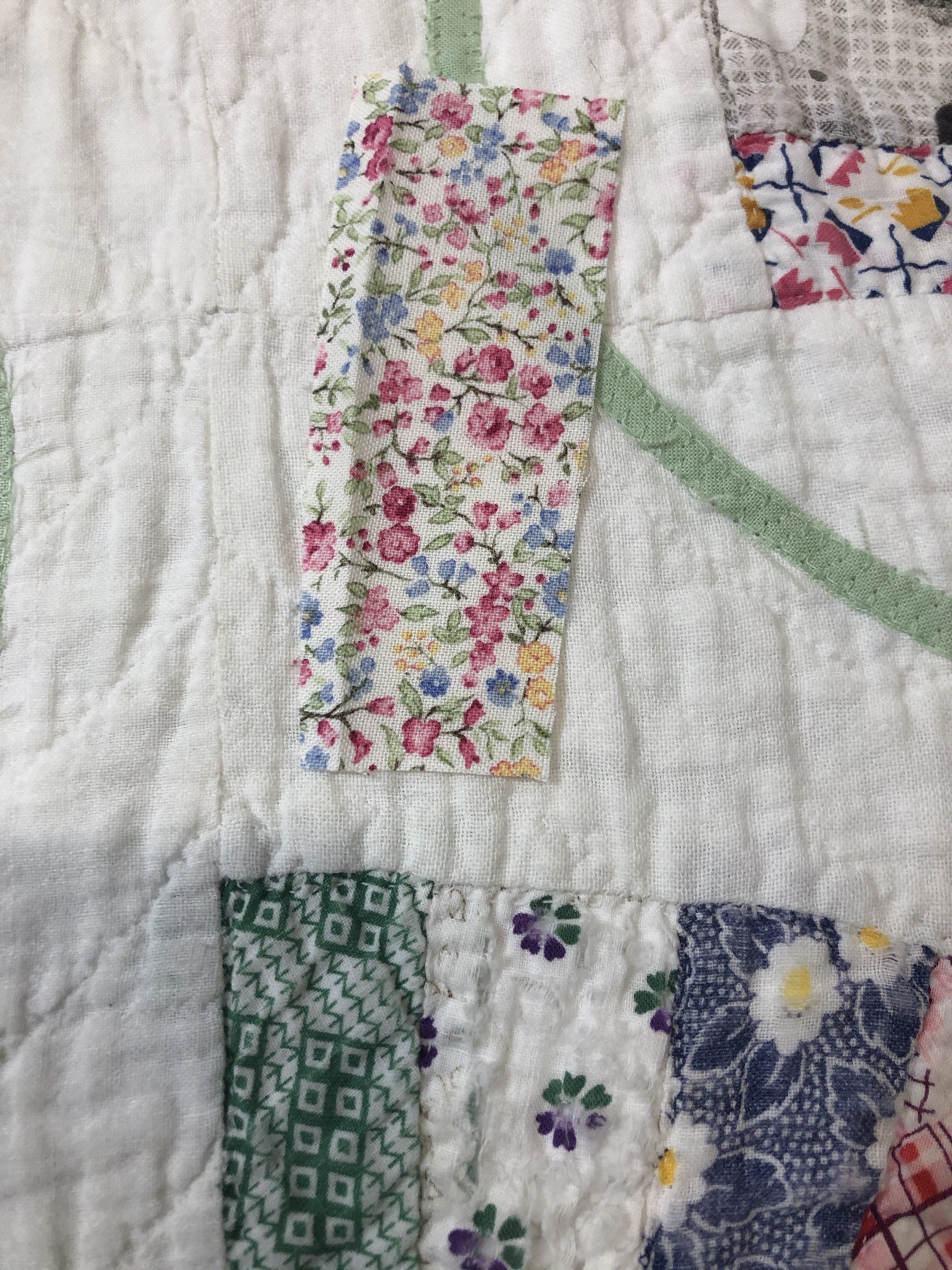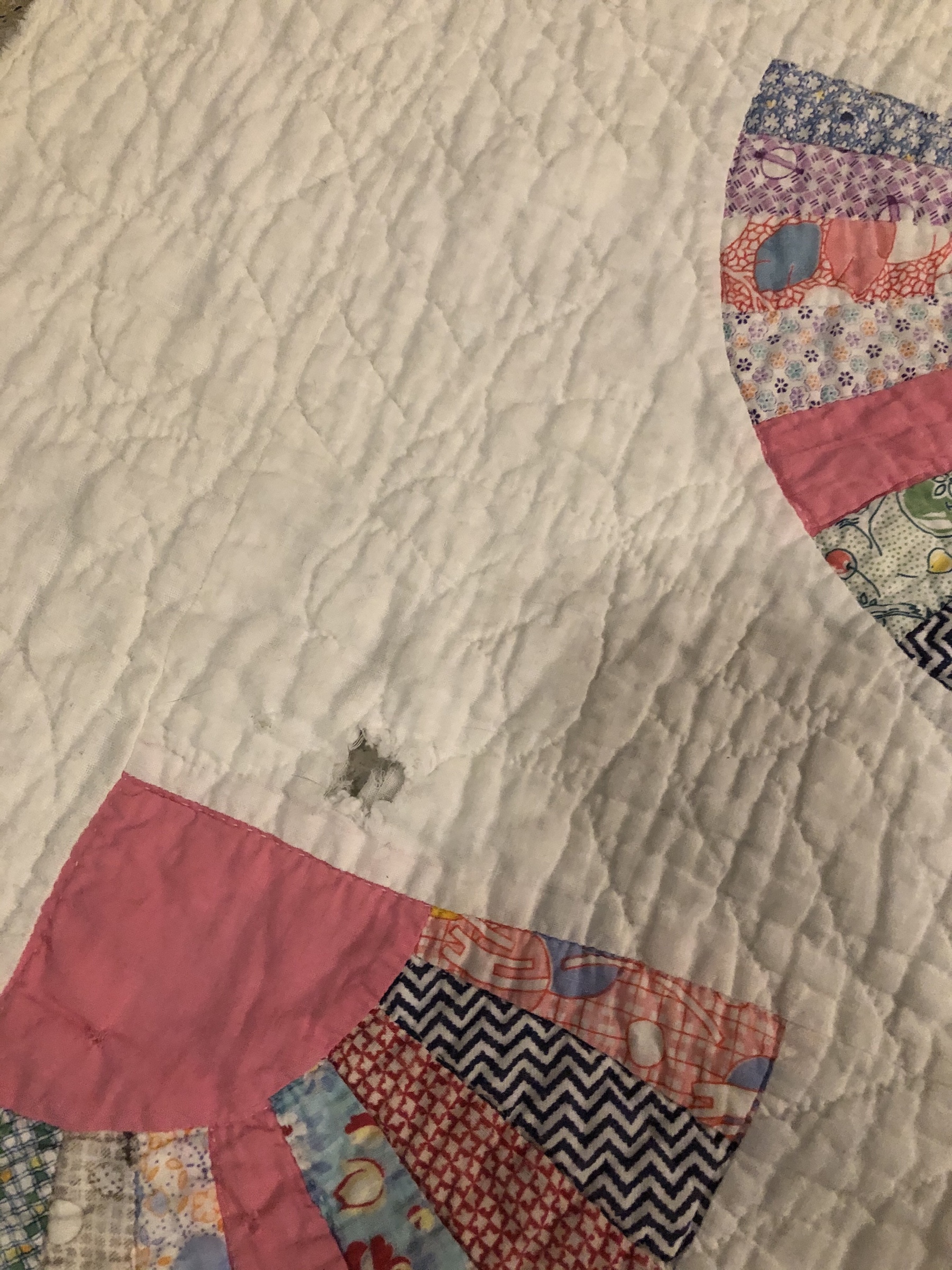 This final hexagon picture collage is in honor of the fully finished piece I lost while speaking to a Guild. I was carrying my project (before it was stitched together) on a display board from my car into the hotel when a huge storm hit! A gust of wind sent everything flying. It wasn’t until a few days later I discovered I had not recovered all the hexies. I was heartbroken 😦 sob sob…
